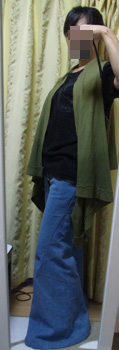 昨日はご心配おかけしました。沢山のコメントありがとうございます。本日病院へ行ってきました~。傷跡残らないようになんたら・・とか詳しくお医者さん話してましたが手足は元々傷だらけなので気にしないと言ったら塗り薬と感染予防に抗生剤もらいました。足の甲と指の火傷がひどいのに、もう痛くない。やはり柔らかい部分の太ももが(涙)ジーンズは当分履けません。擦れて痛くて・・。さ、今日は最近ブログ内で流行っている?(笑)モンパンの着画を。足の甲の火傷がちょっと見せられない感じなのでモザイクかけてみました。 これと合わせてみました。ポケット隠れちゃいますが、やはりゆったり目のトップスの方がバランス良く感じます。 トップスをTシャツにして先日から紹介しているこれ羽織ってみました。バランスは良くなる感じですが、これではポケット隠れちゃう。手持ちの服でもっと合わせてみようと思います。ちなみに黒のTシャツとだけ合わせるとなんだかカッコいい系になりました。で。。。この後無造作にパンツを脱いだら太ももの火傷の所が擦れて涙目に・・。パンツ単体での画像はこれです。ポチ応援よろしくお願いします♪すぐ順位下がっちゃうのよね・・ガクッにほんブログ村