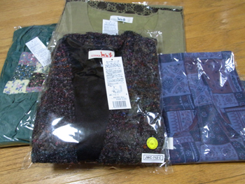 本日2回目の日記、1回目はモン族ワンピの着画お披露目 現在、前日記のモンワンピ着て書いてます。 これ・・・買ってました(爆)秋袋からまたまた購入。前回の秋袋はイマイチだったかな~。手持ちとかぶった物も数点あったし。秋袋ネタバレはこちら今回はアウターが入る物だったので、アウターさえ好みならOKだなと思っていました。ボトムはもう希望書くつもりだったのでハズレは無いなと。さて、ネタバレです。アウター抜いた全体図なんだか中央に怪しい柄が見える・・(鬱)全体的に地味な印象。レビューでも地味過ぎだって書いてあったしな~と思いつつ広げメインのアウターはモデルさん着用のロング丈を希望。ブラウンのヒンドゥー柄か赤っぽい色の和柄ならOKかなと。届いたのは地・・・地味っ!!ww茶系で和柄ってめちゃ地味なんですけど。でもこれがまたポケットでかくてポケットの中も裏地もフリースであったかい!!あぁ~柄がイマイチなのに、変なとこ良いし(笑)そして思った通り重い。。まぁいい。民族系の服には合うねこれ。ジョムトンのアウターじゃなくて良かったよ。もうお気に入りのジョムトンアウター持ってるし。小物系からアロマセットとデザインネックレスとリス族お守りストラップ。ネックレスは使わないかな~。アロマ、こういうのってもったいなくて使わないの沢山あるけど・・まぁオマケみたいな物なのでOK。シークレットタイダイレッグウォーマー!!!持ってない!気になってたの!嬉♪パシュミナストールはこれ使いやすいかも~。もっと明るい色欲しかったけどこれはこれで使いやすそう。バッグ特に希望書かなかったけどジョムトンのバッグ来ました。よっしゃ。まぁ微妙な柄ではあるけれどジョムトンコートとは合うでしょう。衣類は次の記事へ続く・・・ ちょっ!!昨日いっぱい届いてるのに今日も12点入り福袋ってもうキチガイじゃね?とポチ応援お願いします。にほんブログ村