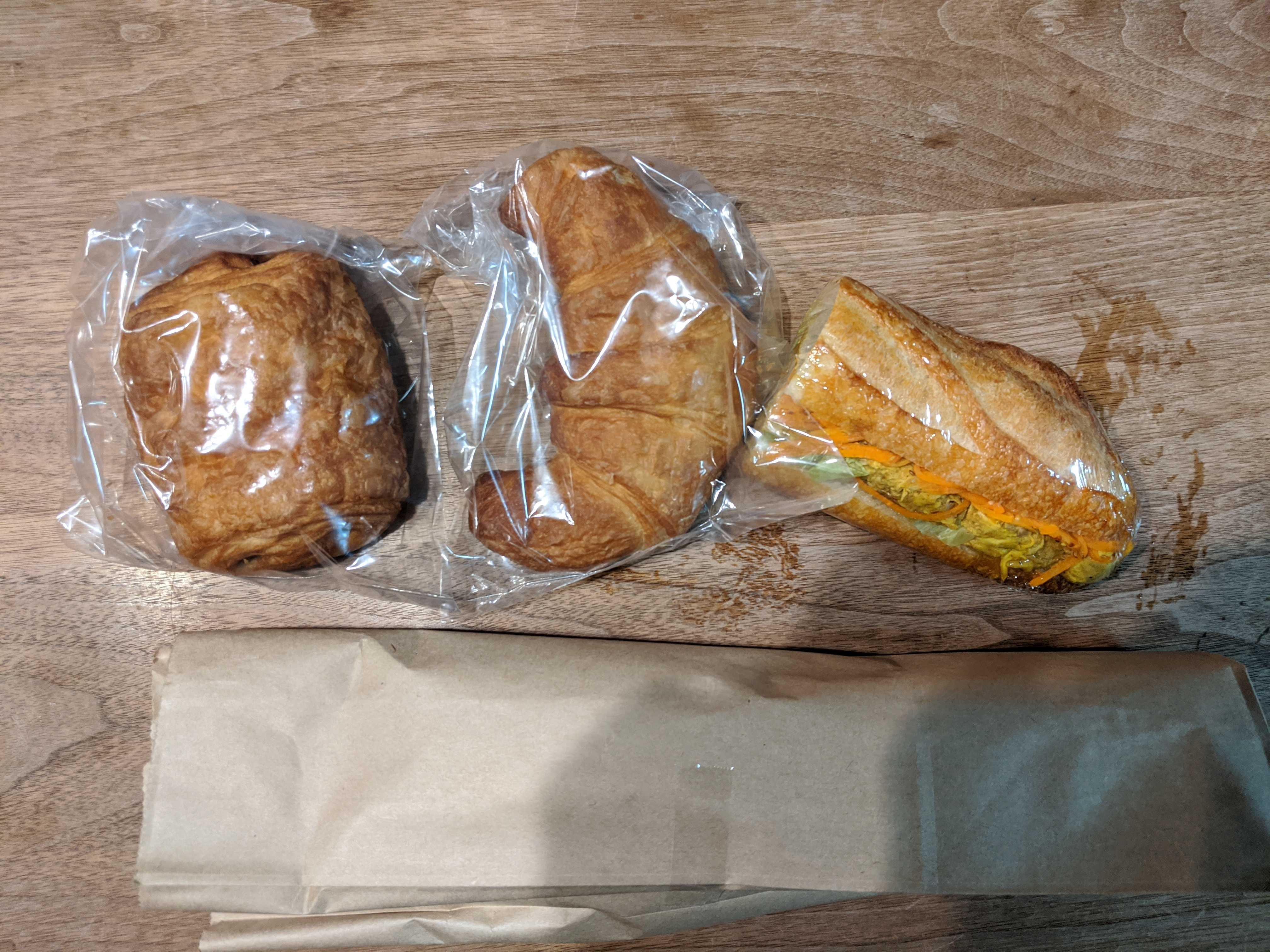 西千葉まで来たついでに、前に行って美味しかったパン屋シャポードパイユさんにお昼くらいだったので、大好きなバケットサンドのラインナップも、他のパンもいろいろありました。バケットサンド カレー風味のひな鳥とキャロットラペ(400円税込)、パンオショコラ(240円)、クロワッサン(200円)、プチバケット(180円)の4点を購入して1020円でした。バケットサンド カレー風味のひな鳥とキャロットラペこれがやっぱりめっちゃ美味し~サンドイッチになってしっとりしているはずなのに、バケットの表面はバリっとしていて香ばしくって中は詰まっていて割と噛み応えがあって美味しいの柔らかいカレー風味のしみ込んだひな鳥にレタス、酸味の効いたキャロットラペ…よく噛んで食べるからお料理1皿食べたみたいな満足感があります。好みパンオショコラこちらは翌朝リベイクしていただきました。表面はパリッとして香ばしく齧るとバターが軽くふわり。これも普通以上に美味しいです。プチバケット息子用に買ってきました。ブルーベリージャムを挟んであげたらパクパク食べました。私もリベイクして食べてみたけど、バケットサンドの方が美味しい気がするのは何故具が好みだからかな。これも普通に美味しいんですけどね。クロワッサンは主人が食べて感想聞き忘れました。ここはバケットサンドが好み。ごちそうさまでした。また近くまで来たら来ようっと。シャポードパイユ(Chapeau de paille)千葉県千葉市稲毛区緑町1丁目21−3https://www.instagram.com/chapeaudepaille.millefeuille/https://twitter.com/chapeau_d_p