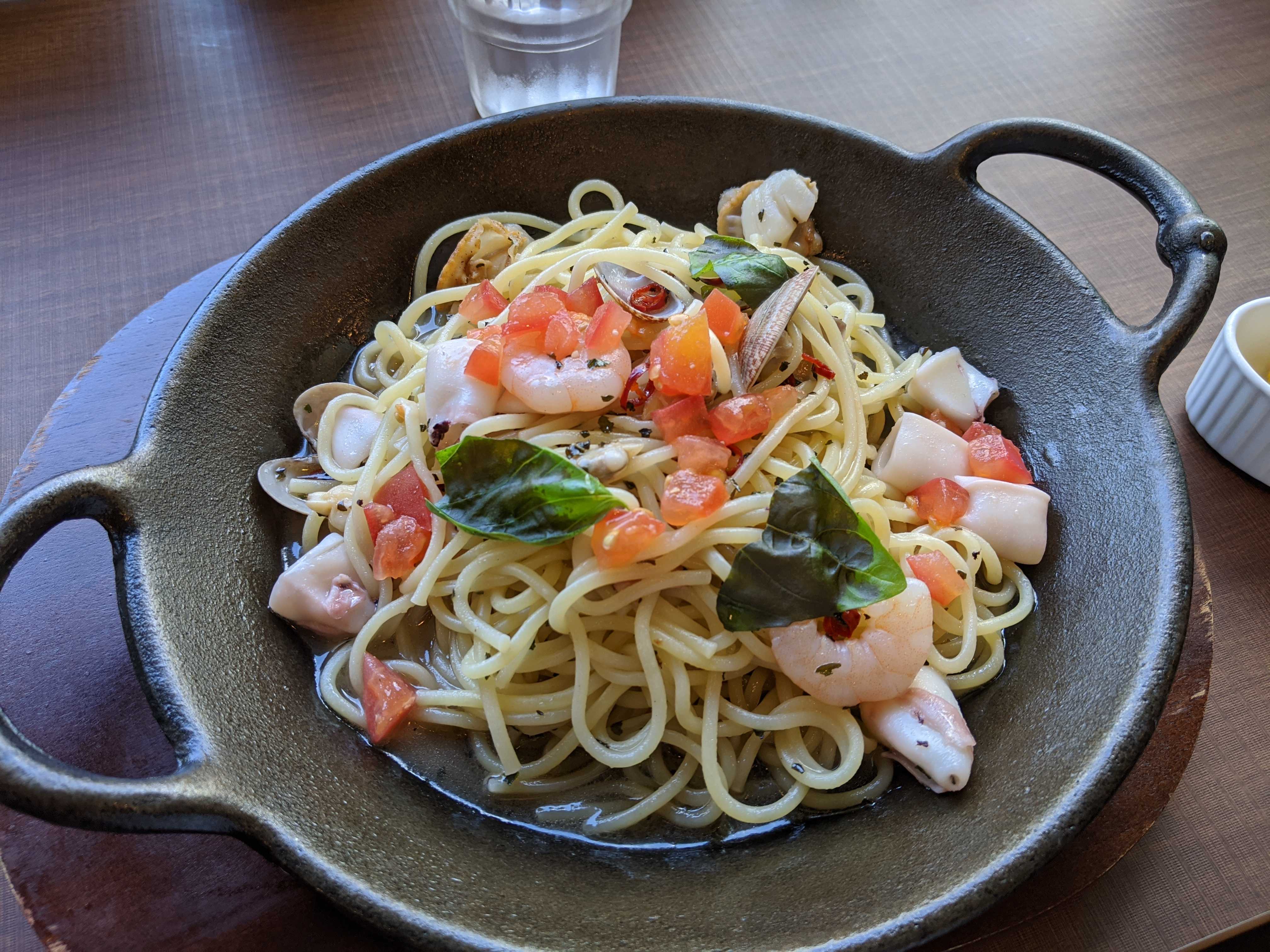 今年の1月に鎌倉パスタからスパゲッティバジリコに店名変更。サンマルク→鎌倉パスタの店舗検索でも全国で1店舗しかないけど、これからお店が増えるのかな津田沼のスパゲッティバジリコは2022年6月30日に閉店したそうです。そして新横浜に2022年6月29日にOPENしていましたたまたま見たら、この日は割と空いていたので入ってみました。タッチパネル式での注文。コロナでタッチパネル式のお店増えているみたいですね~。期間限定で「バジリコ史上、最高の魚介感!」と銘打たれた、海鮮塩バジリコ 並盛(300g,990円)を注文。アツアツの鉄板で提供。鎌倉パスタっぽい芯を残さないモチモチの柔らかい生パスタに、海老、あさり、イカ、帆立。あと、トマトにバジル、唐辛子とニンニクが効いています。麺に魚介の出汁が出た塩ベースのスープが絡まって美味し。別添えのレモンで爽やかに味変。ごちそうさまでした。美味しかったですが、個人的には鎌倉パスタでパン食べ放題を付けたランチの方が好きかな。だって、焼き立てのパンも美味しいんだもん。津田沼には他に2軒も鎌倉パスタあるから選べますね。生パスタ専門店 スパゲッティバジリコ ミーナ津田沼店千葉県習志野市津田沼1丁目3−1 ミーナ津田沼 1階2022年6月30日に閉店したそうですhttps://www.saint-marc-hd.com/b/saintmarc/info/90124/?brand_type=PSTピザも選べる生パスタ3食セット10種類のソースから選べますピザは3品目のみ選択可 パーティー 記念日 誕生日 冷凍 オードブル 惣菜