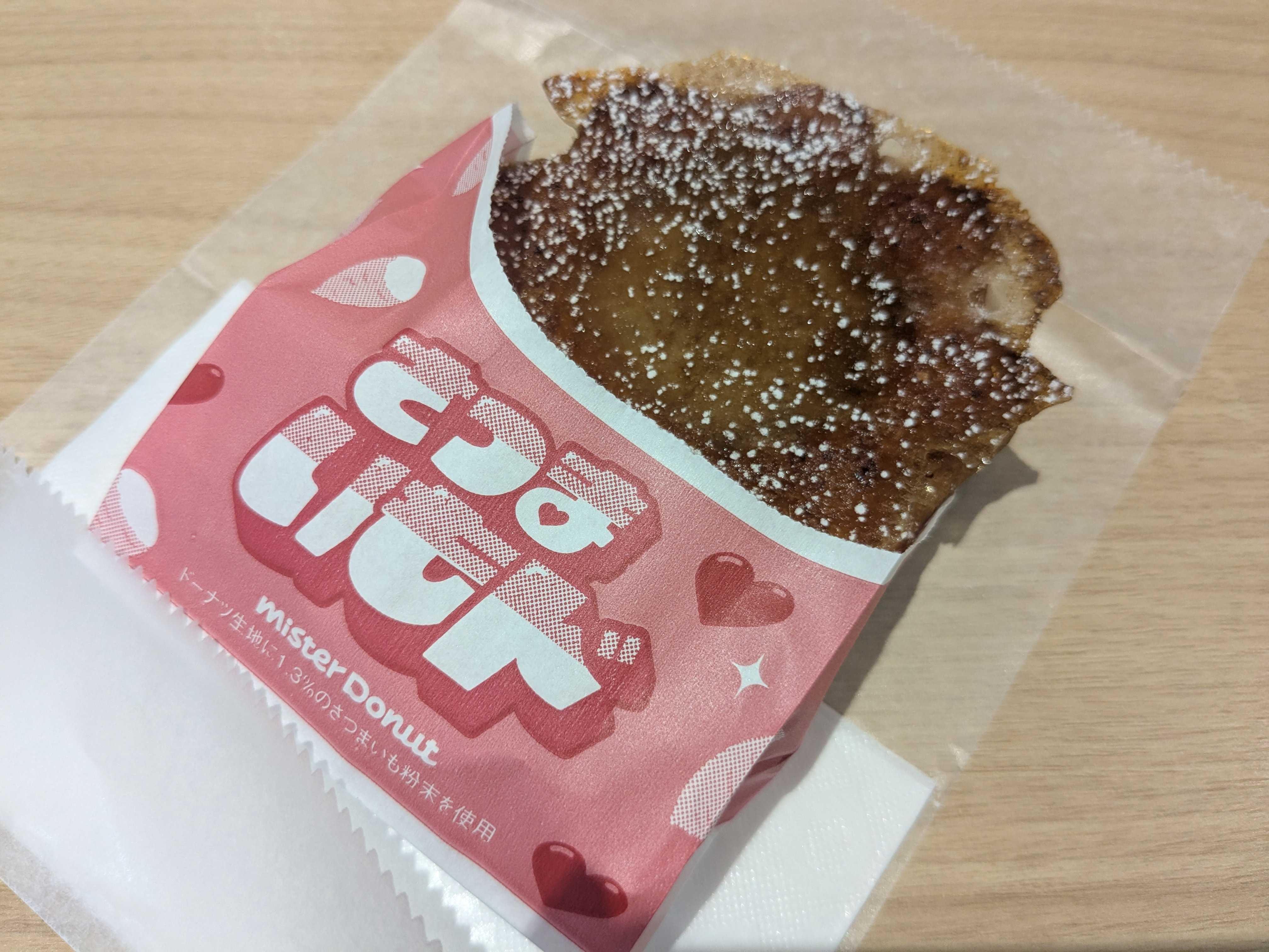 今年もミスドにサツマイモと栗の季節がやってきました去年も食べて大好きだったさつまいもドから食べようっともうすぐブラックサンダーコラボのも出るし、ボーっとしていると食べ損ねちゃうのよねさつまいもド 香ばしブリュレ(205円内税)さつまいもをイメージしたしっとり&ねっとり食感の生地をキャラメリゼし、シュガーを合わせて仕上げました。※ドーナツ生地に1.3%のさつまいも粉末を使用が公式の説明生地のさつまいもっぽいしっとり感と甘さがほっこり美味し厚みがしっかりある上のキャラメリゼはカリッカリと心地よく割れて、しっとり生地との対比が良いです買ったのが出来立てだったのかもしれないけど、去年よりも更にカリッカリしていて香ばしさがましたようなやっぱりこれ好きさつまいも好きだから他も食べたいけどこれもまた食べたいし、ミスドさん今回魅力的な商品が多すぎごちそうさまでしたさつまいも ドーナツ棒 メガ盛り 900g 【今なら2つご購入で選べるおまけ付き!】ドーナツ 送料無料 お菓子 スイーツ お取り寄せ お試し お取り寄せスイーツ 熊本土産 土産 食べ物 プレゼント 実用的 食品 食いしんぼう祭