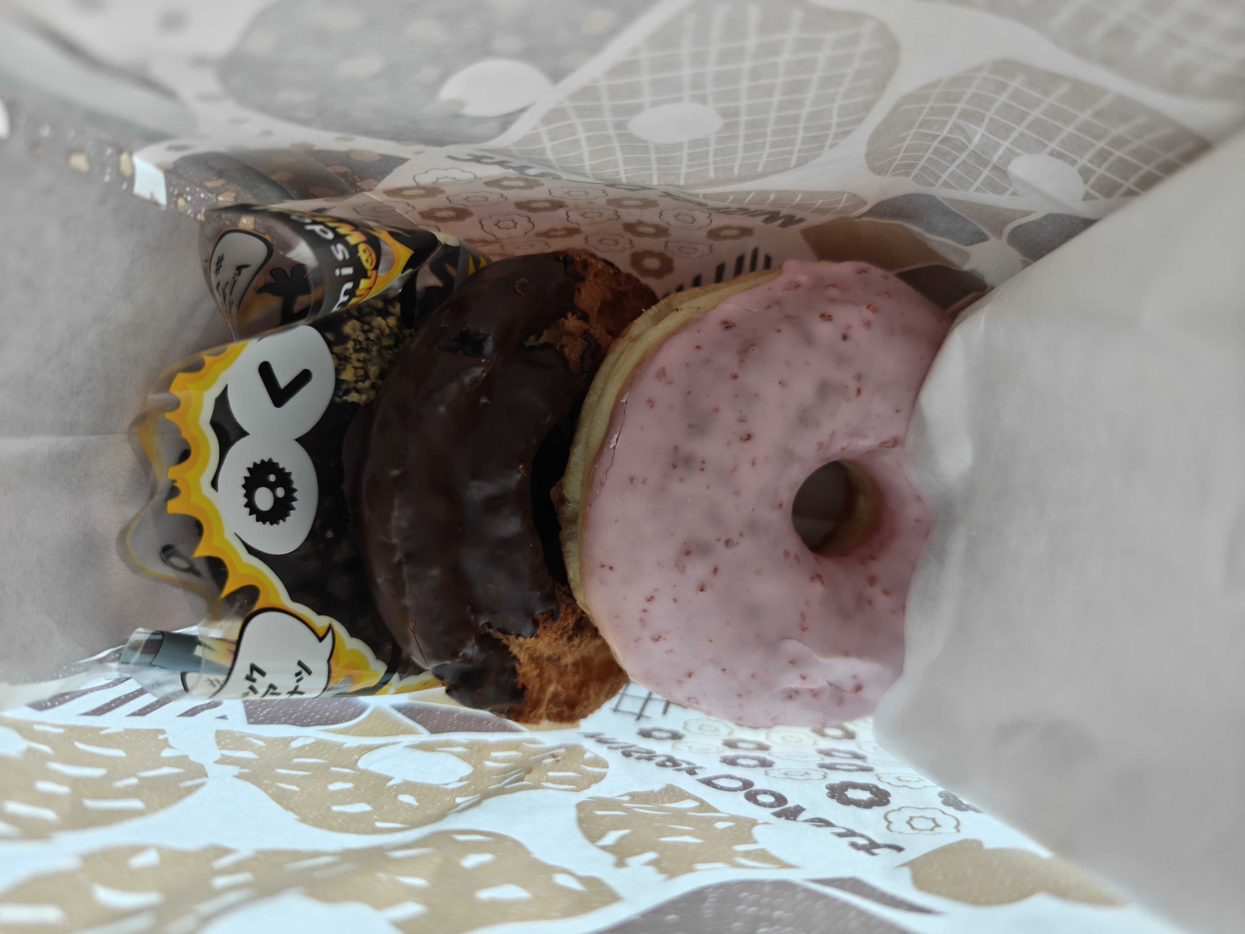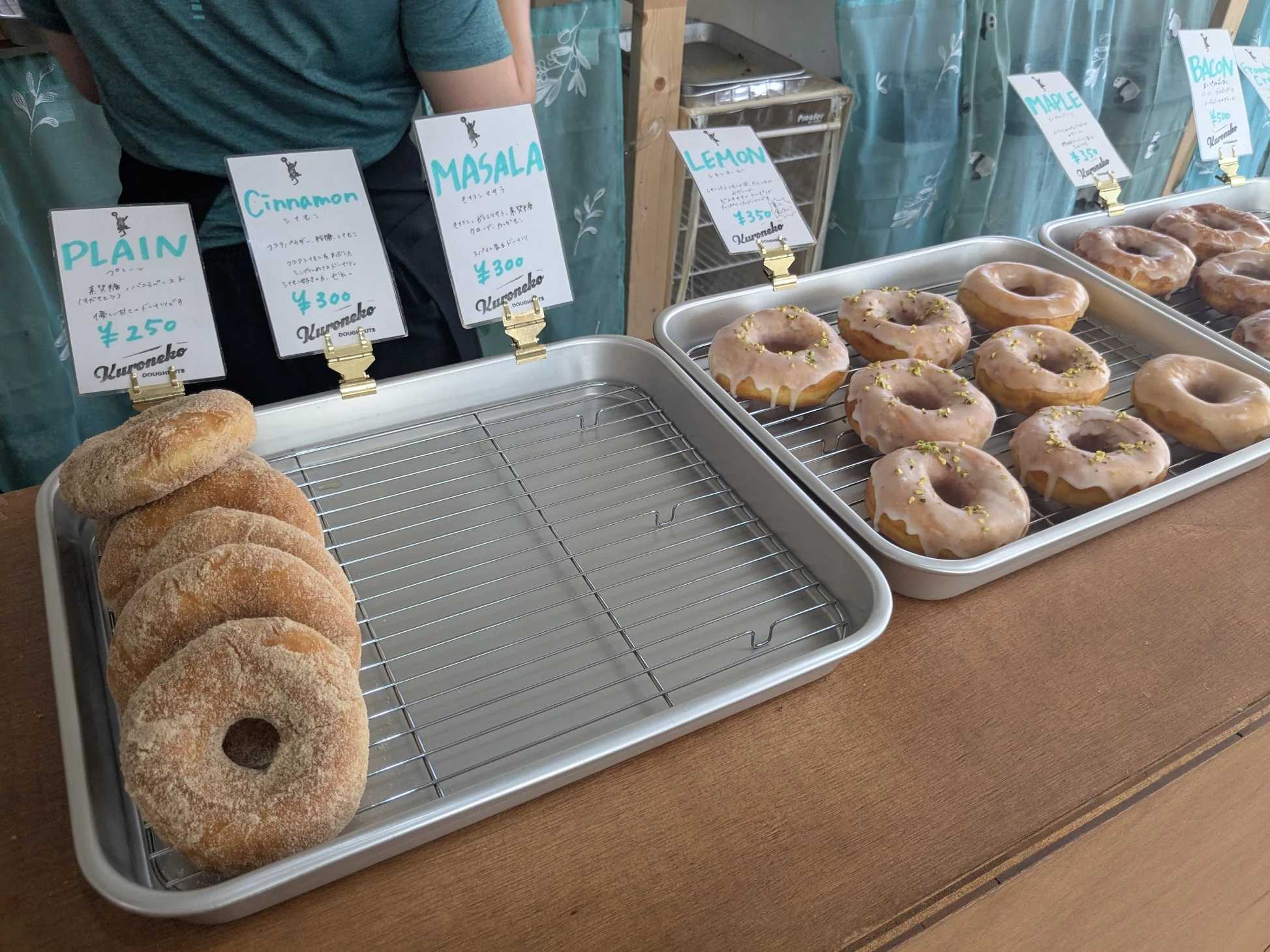 今年の6月にオープンしたくろねこドーナツ勝浦店さん土曜日、10時オープンだからちょうど良いかなと思って伺うと…お店の前に本日は都合によって11時オープンの案内お店のインスタには遅れてオープンする告知はありませんでしたが、勝浦大漁祭りの期間中は告知なしの臨時休業や短縮営業のお店が続発するのよねwww(祭りの期間中は車両通行止めとかあるしね)それに、一瞬ショックをうけただけで、時計を見ると10:57…3分待てばいいだけか…スパイスコーヒーさんでアイスコーヒーをテイクアウトして戻ってきたら、開店していました商品を並べている店員さんが元気に「いらっしゃいませ」とあいさつまだ出していない商品があって何があるかを説明してくださいましたおススメを聞きながらも手早く商品を並べていきます落ち着いたくらいの頃に写真を撮っていいか伺うと「よろしくお願いします」と快い返事↓まだ並んでない商品をありますが、プライスカードが出ているものはこれから並ぶものだそうです並んでいる以外に冷やしドーナツもあるということでしたメープルベーコンドーナツ(500円)、カカオニブドーナツ(300円)、冷やしドーナツのティラミスドーナツ(500円)、シナモンドーナツ(300円)を購入しました主人が選んだ冷やしドーナツのティラミスドーナツはその場で頂きました一口くれるというのでもらうと、ちゃんとティラミスだしっかりエスプレッソっぽい苦味と甘味の無いココアパウダーが、まろやかでミルキーなマスカルポーネクリームと、ぱりっと薄くコーティングされたホワイトチョコレートに包まれてめっちゃ美味しい主人も気に入っていました「お店でドリンクも売っているのに、スパイスコーヒーさんを持ち込んでごめんなさい」というと明るく「大丈夫ですよ」と一応、店内で飲むのは止めておきましたが、優しく明るい雰囲気のお姉さんでしたカカオニブドーナツこちらは持ち帰ってその日のお昼ご飯にいただきましたぱっと見チョコレートがかかったドーナツはこれとエクレアがありましたが、チョコが濃そうな方を選んでみましたふわもち生地にビターチョコレートとカカオニブのトッピング暑いからちょっとチョコが溶けかけでしたが、柔くて美味しいです油っぽさをあまり感じなくて、食感はこの間食べた代々木上原のハリッツに近い感じ、味はハリッツよりややミルキーな感じ(?)がして好みですメープルベーコンドーナツこちらも持ち帰ってその日のお昼ご飯にいただきました店員のお姉さんのお好きなものがこれとティラミスだったので購入してみましたメープルバニラのグレーズに、ゴルゴンゾーラチーズとベーコン…ちょっと面白い組み合わせゴルゴンのちょっと癖のある味と香りにベーコンの塩味とメープルバニラの包み込むような優しい甘味と香りが意外とあいますどことなくクアトロフォルマッジョに近い感じであれが好きな人ならイケるかも個人的には一口しか食べなかったティラミスドーナツが一番美味しかったwシナモンドーナツは子供が食べて「すごく美味しい」と喜んだそうです勝浦にしてはちょっとお高めだけど、あの辺で美味しいスイーツを食べながらカフェが出来るところは少ないので頑張って欲しいですごちそうさまでしたくろねこドーナツ勝浦店千葉県勝浦市墨名797−1https://www.instagram.com/krnk_ktur/【ピーナッツ リング 10個入】 個包装 焼き ドーナツ 焼きドーナッツ 焼菓子 リングケーキ ケーキ ご当地 お取り寄せ 千葉県 国産 落花生 千葉県産 落花生 八街 ピーナッツ ますだの落花生 ナッツ キャラメル 焦がしキャラメル