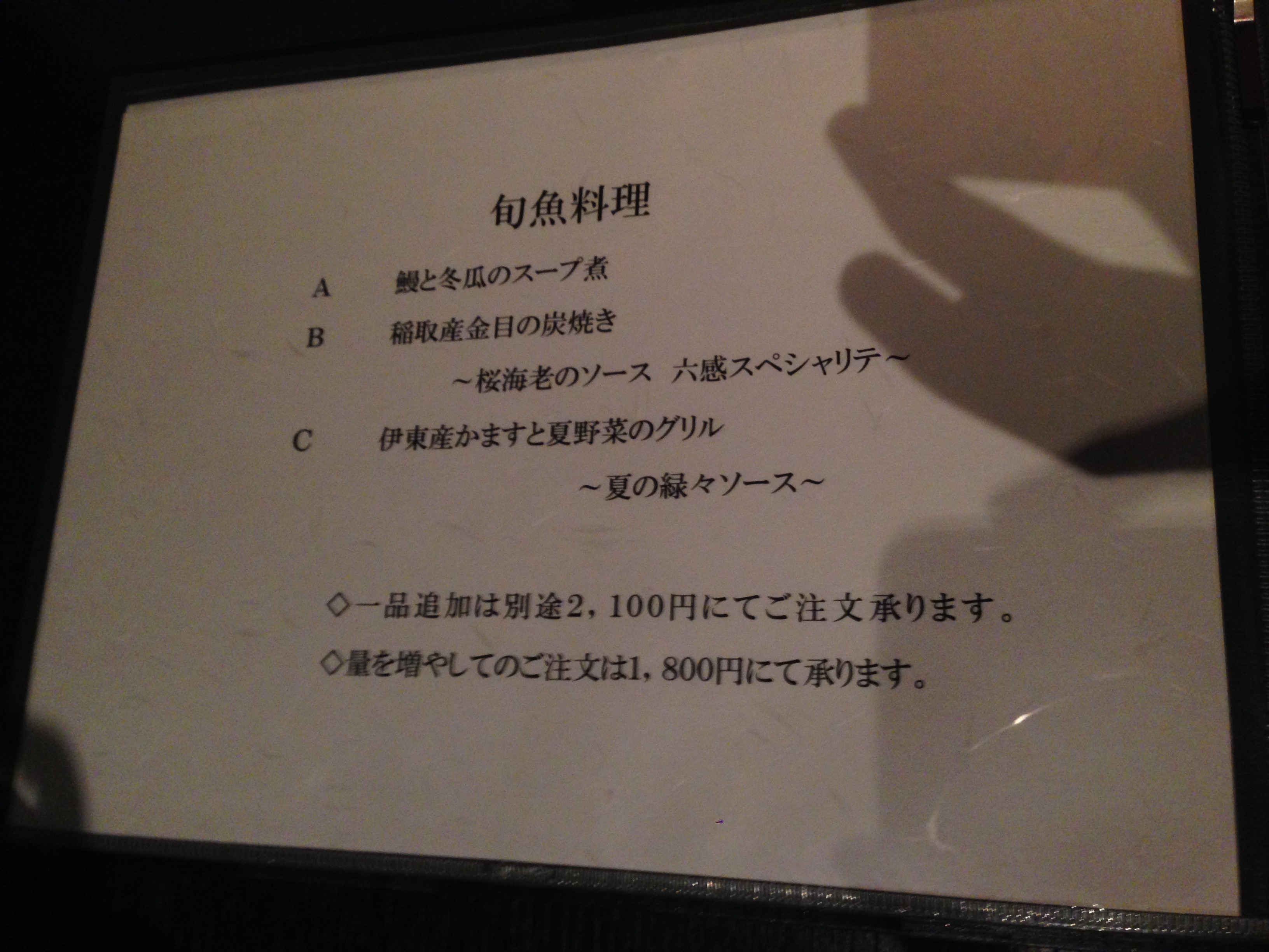 メニューには一部の素材の名前だけ書いてあるのですが、一応写真で載せておきます。