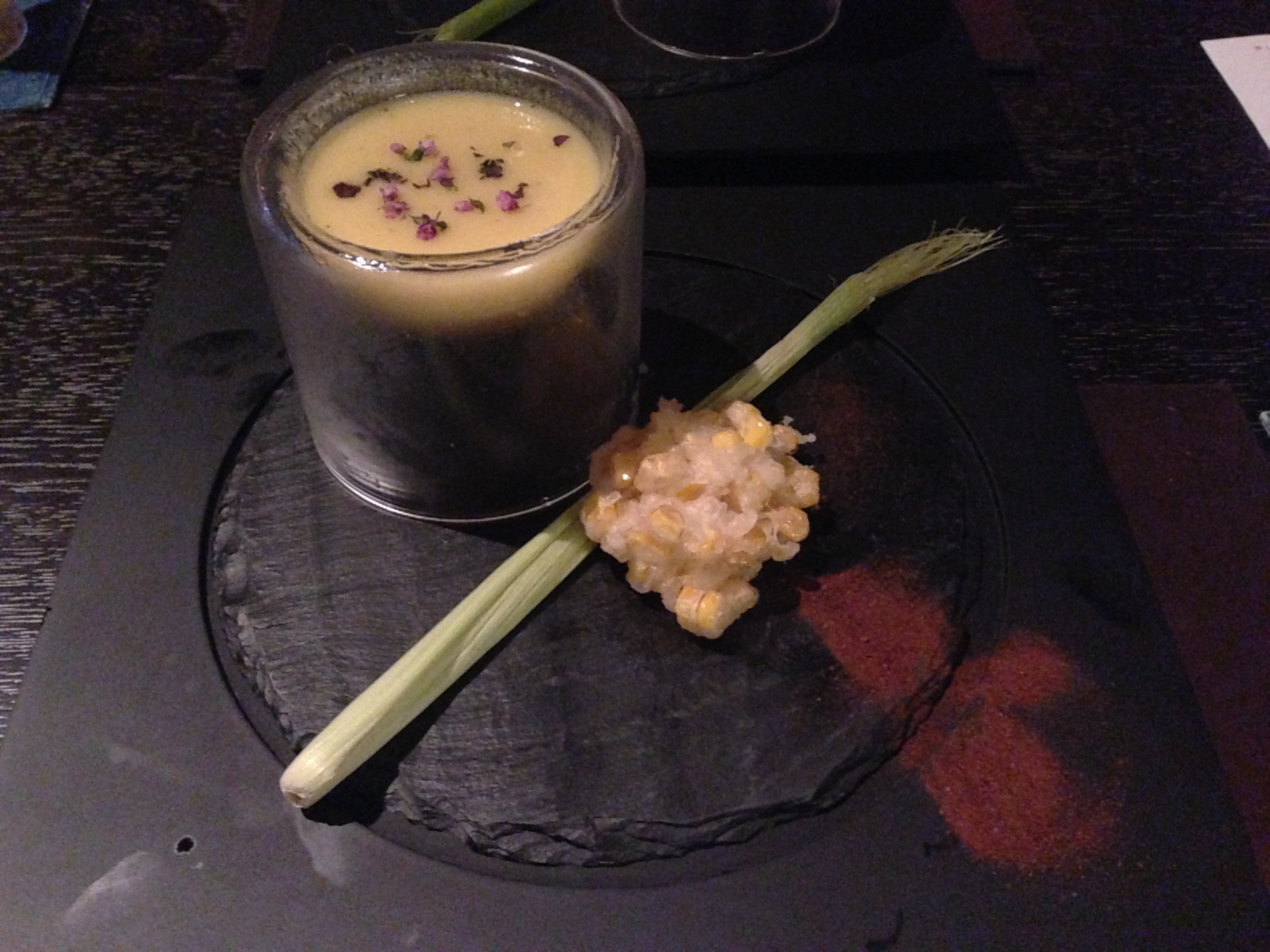 トウモロコシのスープと天ぷらですね