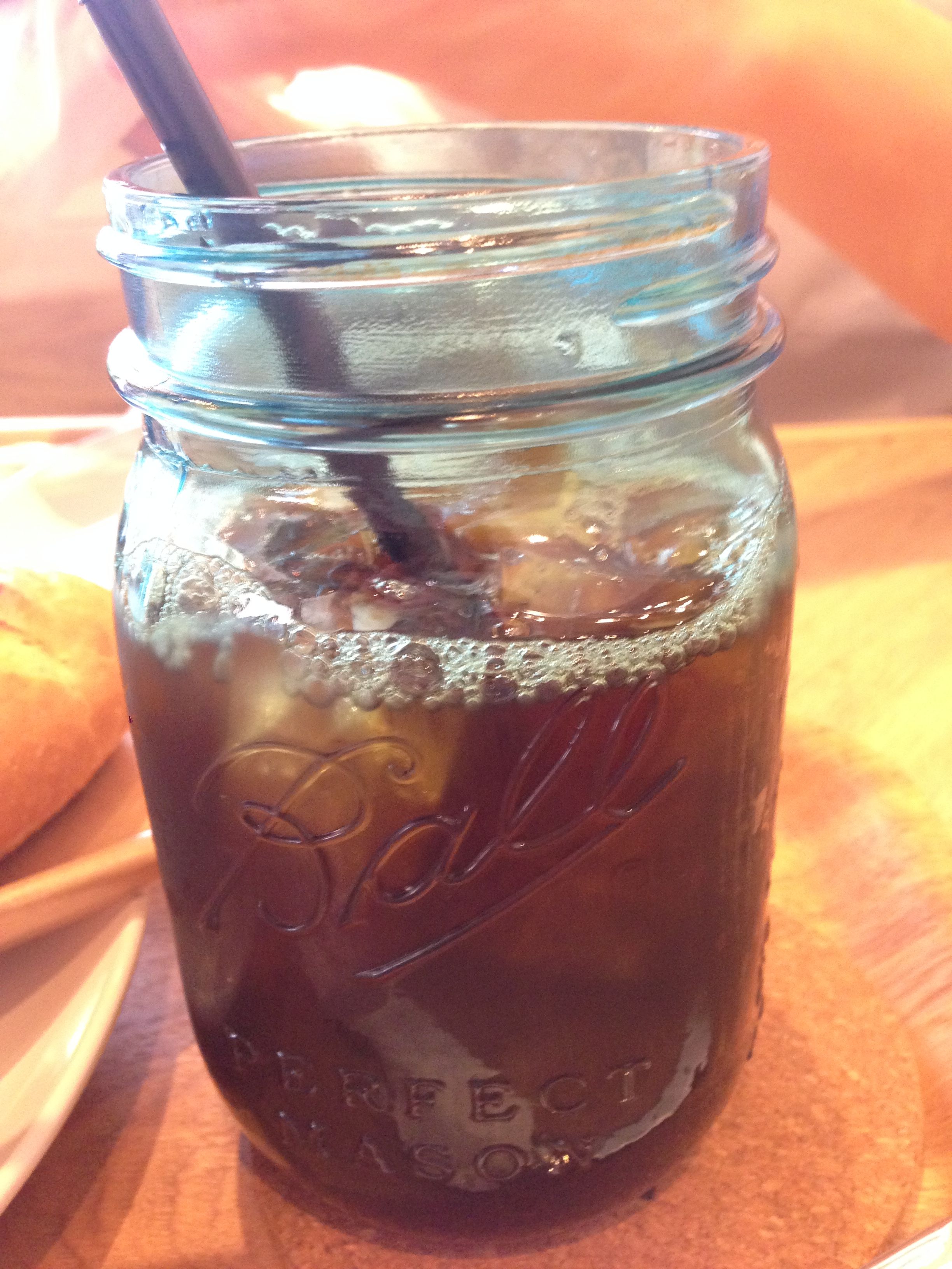 パニーニランチセット(\980)でエビとブロッコリーのパニーニとアイスコーヒー(グアテマラ)を選びました