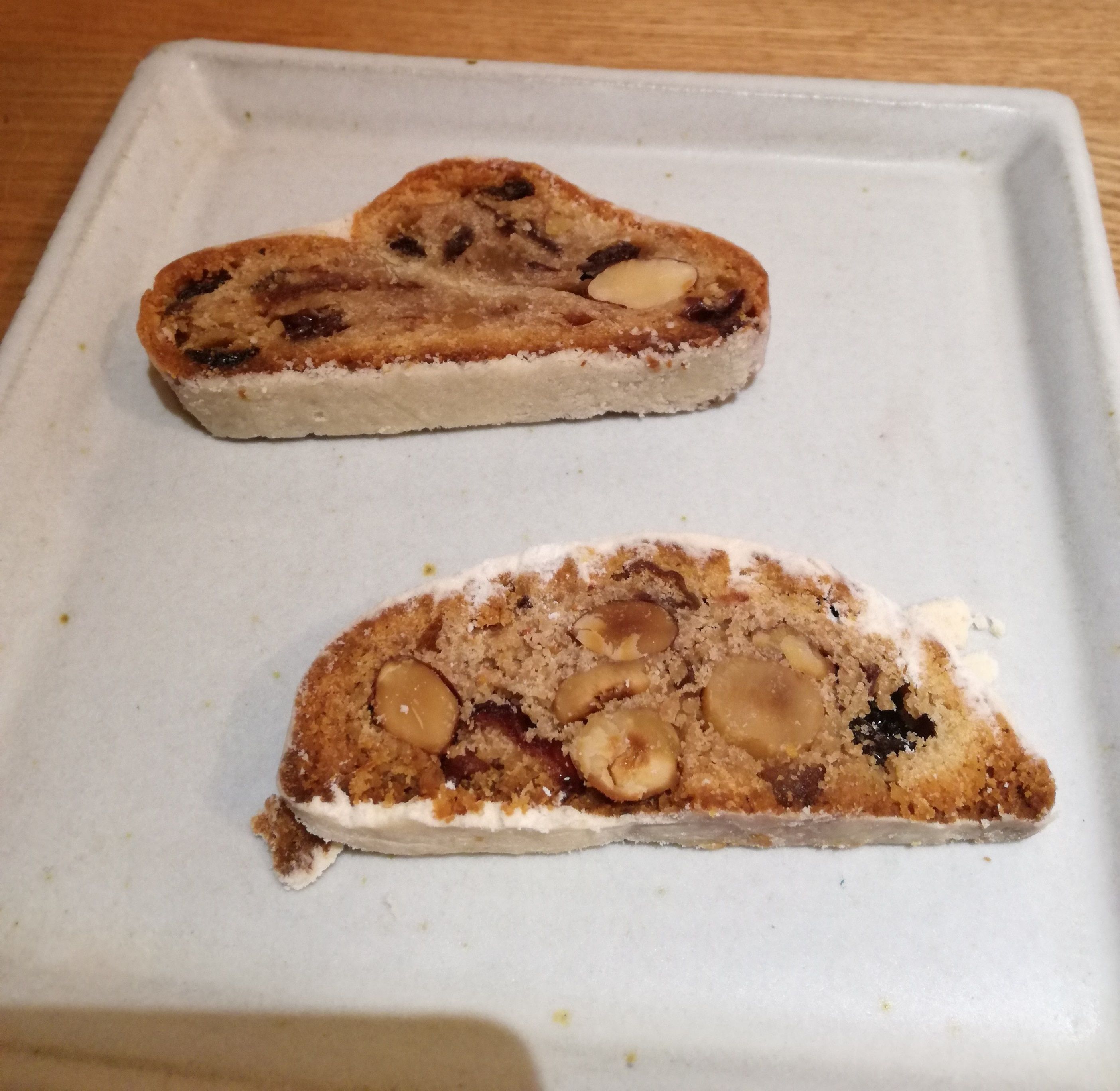 メイナさんは、ヘーゼルナッツ、オレンジピール、いちじく、クランベリー、レーズンというところ。