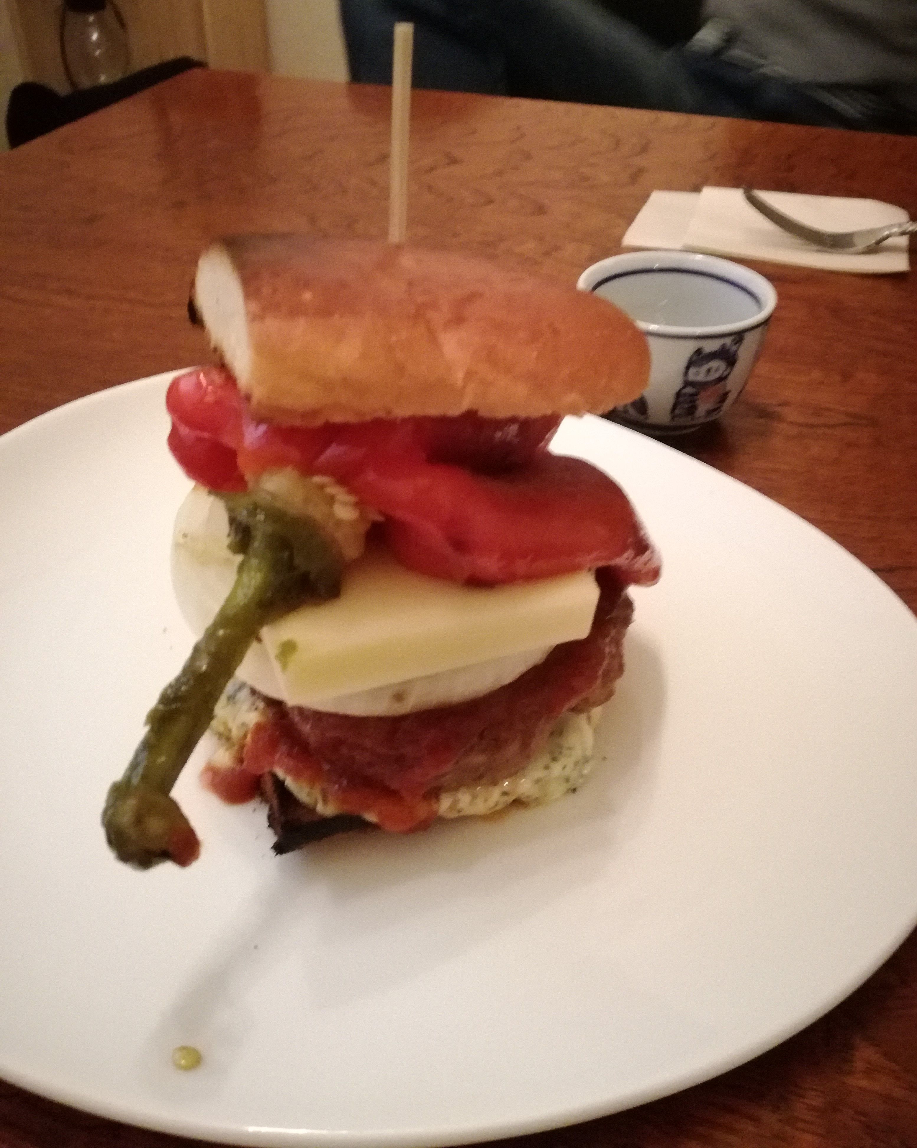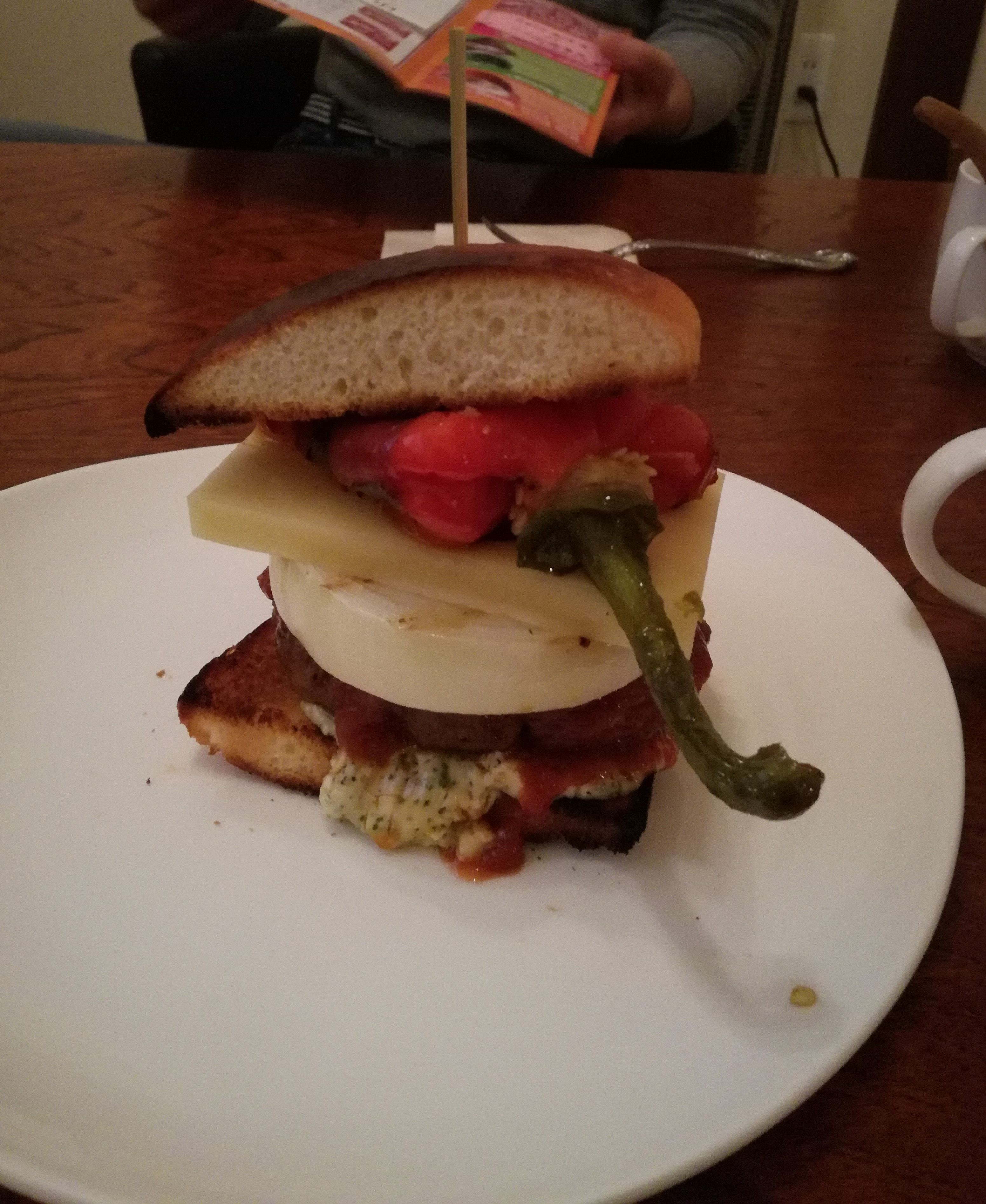 すごい分厚いけどこれ以上潰せなくって、大きく口を開けて食べるとどの具材も美味し