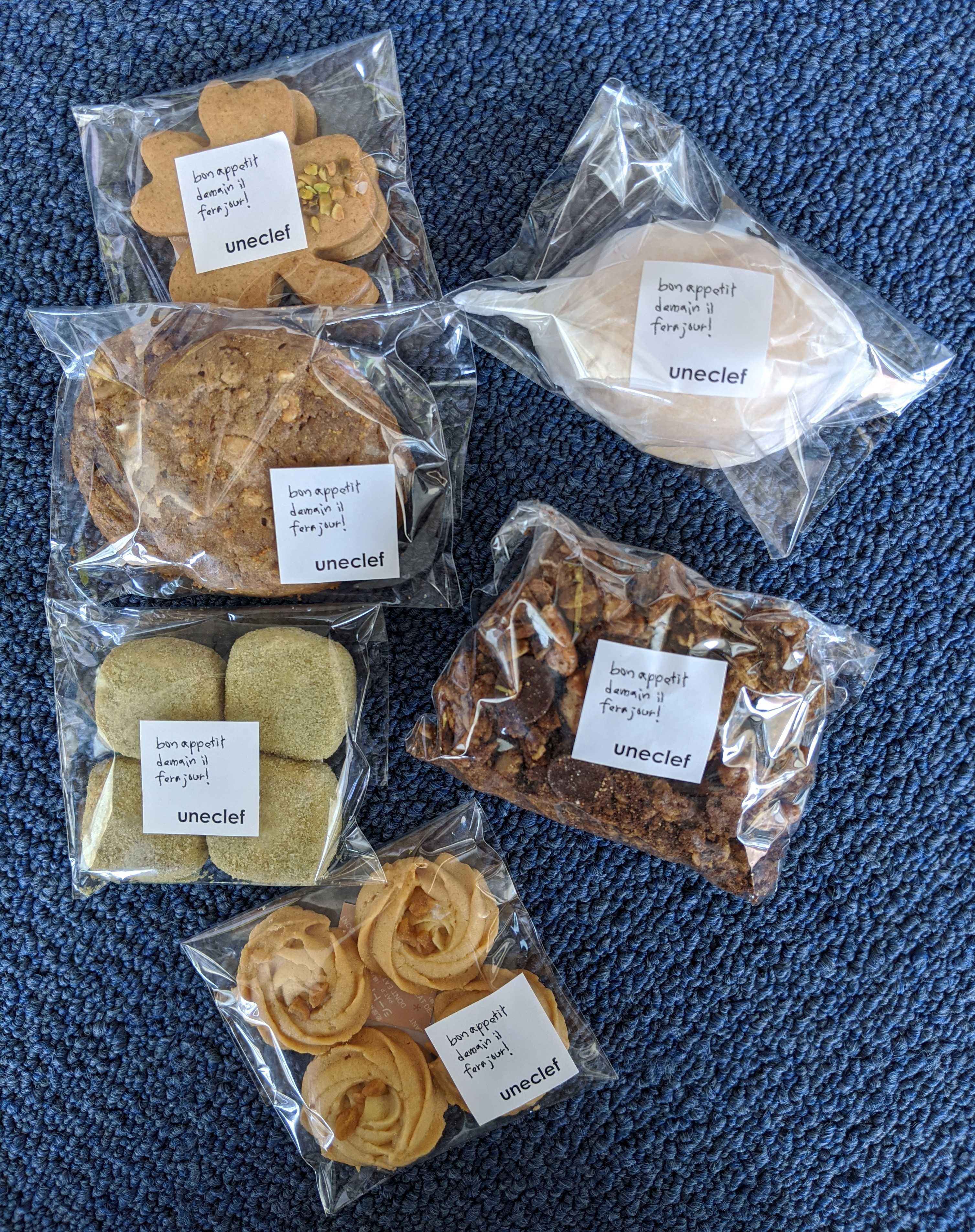 レモンケーキ​、クローバーのサブレ、桜のクッキー、メープルのクッキー、珈琲とホワイトチョコのクッキー、珈琲とチョコのグラノーラの6点で2549円(+送料)でした。