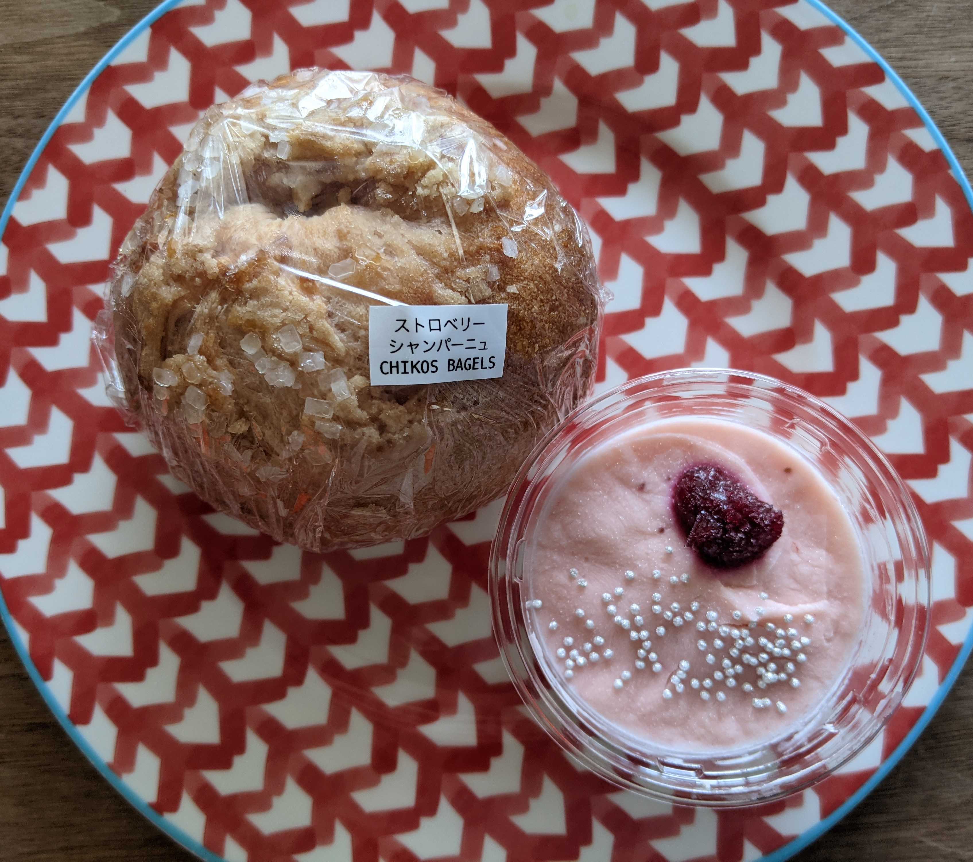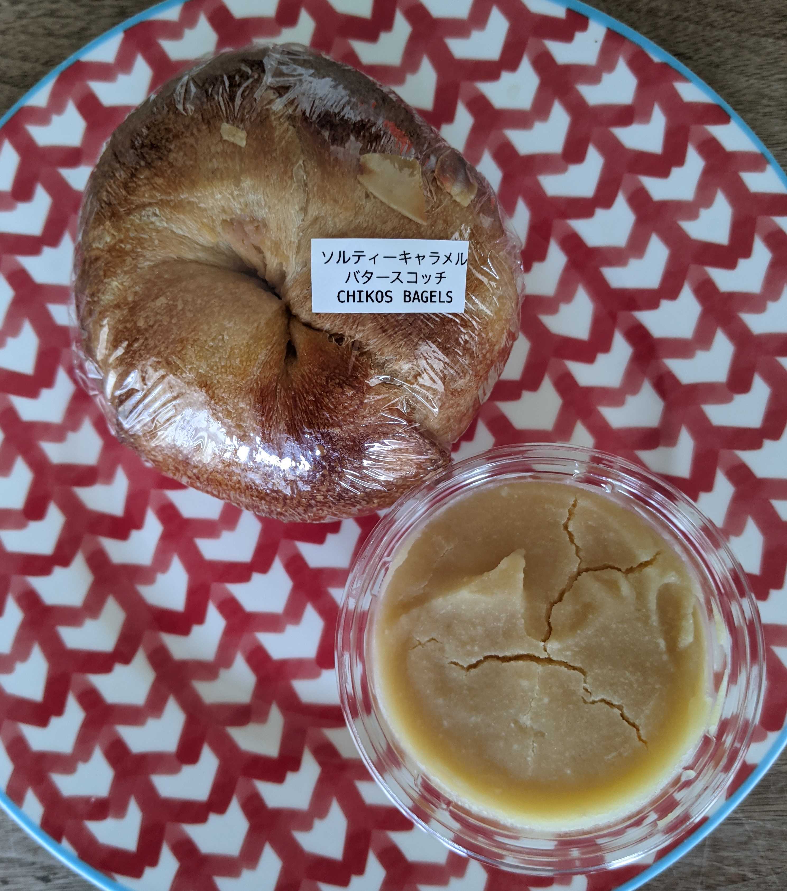 これも自然解凍→リベイクしたベーグルに冷凍されたままのクリームをサンドしていただきました。