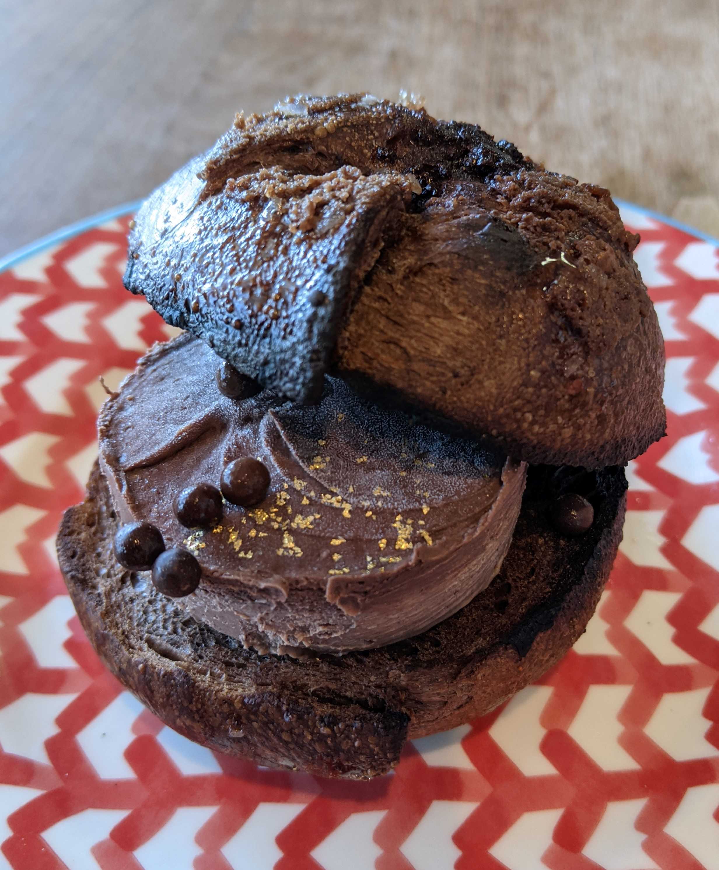 表面ガリッとして、中はふわムギュの生地はほろ苦ココア味でところどころにホワイトチョコが巻き込まれていてミルキーさがプラスされて美味し