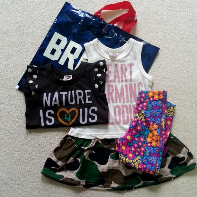こんにちは!BREEZEとアプレレクールからシークレットセールのメールがきたのでさっそく行ってきました。BREEZEとアプレレクールは好きでよく買い物するので、セールまえになるとシークレットセールのメールがきます。何を買いましたか?♪♪♪今日はコレをポチったよ♪まずはBREEZEで娘に~カモフラ柄のワンピは新作でセール除外でした。でも好みだったのでお買い上げトップス。partypartyのスパッツ。息子に。グレーが好きでグレーばっかり買ってしまう(笑)partypartyのパンツ。このカラーの組み合わせが可愛いい~(о´∀`о)デザインが可愛いかったので息子にパンツも。アプレレクールで購入したもの。ストライプ柄のパンツが欲しかったので即購入決めました。後ろのポッケにスイカがついています。こちらのトップス。去年も同じタイプのトップスを買って凄くよかって気に入ったのでサイズを大きくして購入。ワンピの下に着ても可愛いい~去年はGapのワンピと合わせて着せたりしてました。まだ顔が赤ちゃんらしさがのこっていたかも(*´×`*)今年は浴衣を購入。去年はサイズがなくて甚平きせてました。柄が可愛いい。でもセール除外でしたが欲しかったので購入。あと欲しくて迷い中~の水着。去年も実家の前でプール遊びや幼稚園の小さい子も参加して遊べるプールに連れて行ってあげたら喜んでいたので今年も行く予定です。息子はsunnyにしようかなぁ~娘は去年ラッフルバッツにしたら高評だったので、今年はこのタイプにしようと考えてます。教えてカワイイ子供服いつも応援クリックをありがとうございます(о´∀`о)最後にポチっとクリックをしてもらえたらブログの励みになります(・∀・)人(・∀・)にほんブログ村にほんブログ村