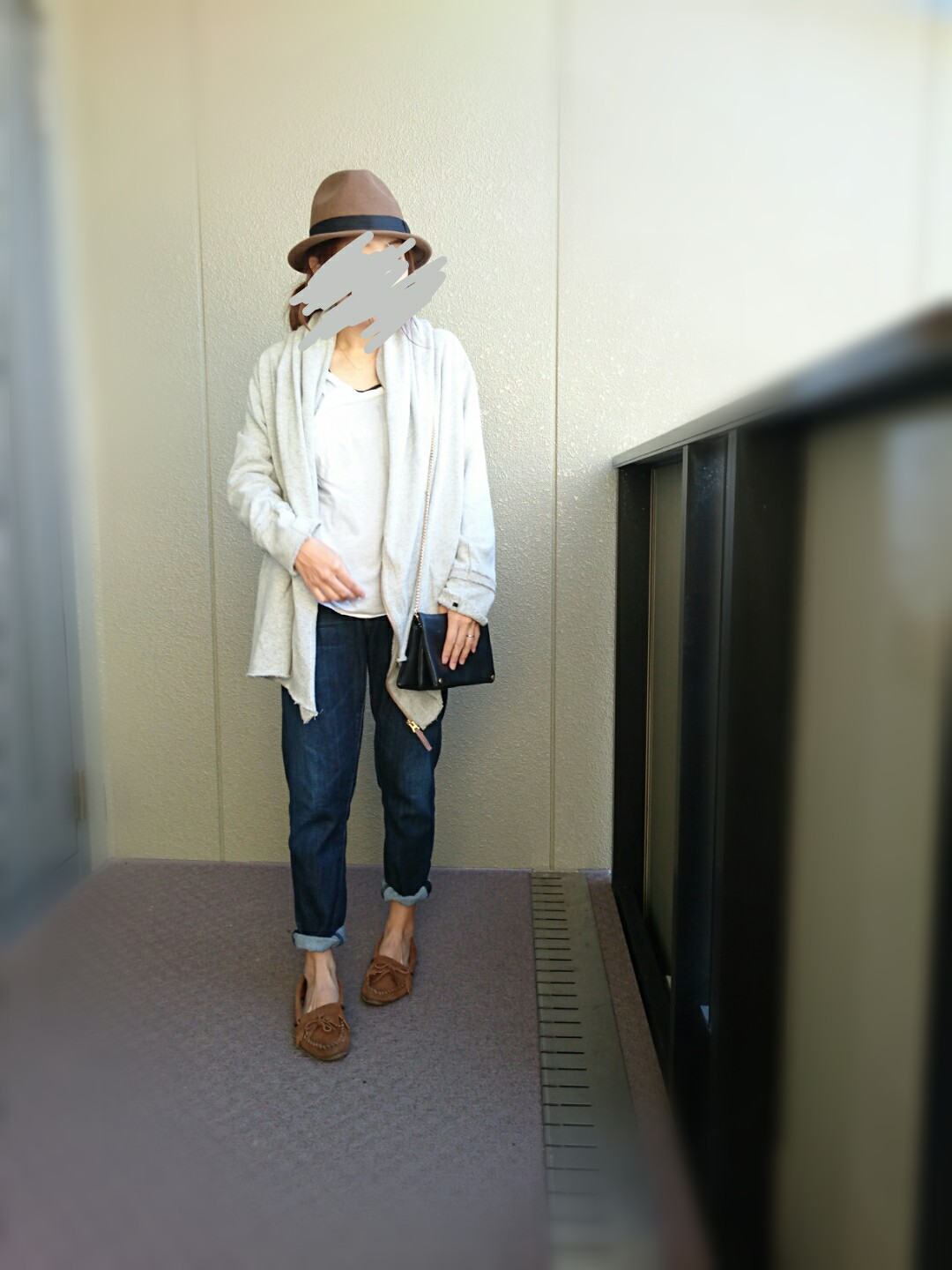 お手頃ハットをシンプルなスタイルに合わせても可愛い!