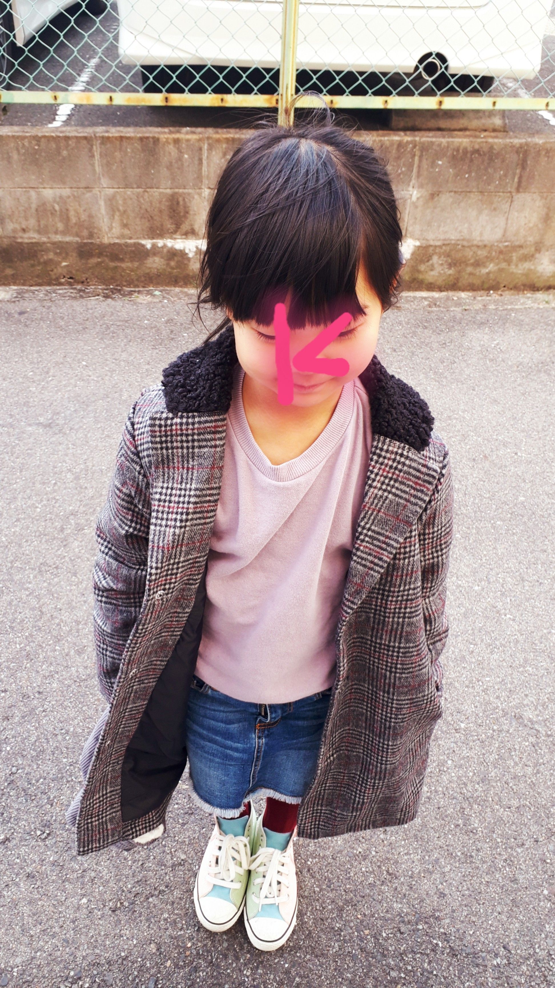 B:mingで購入した娘のチェック柄コート。