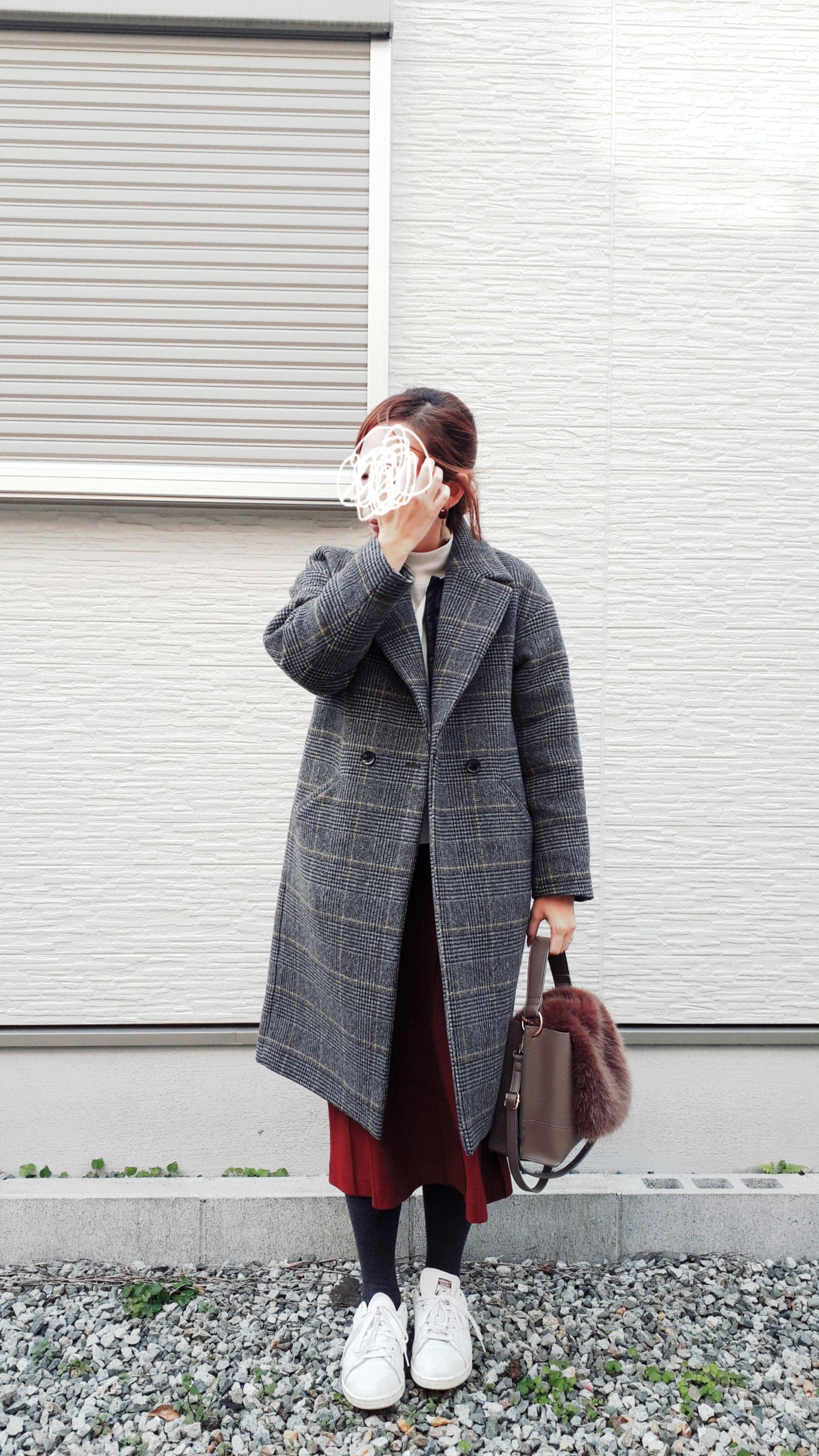母もチェック柄コートで…