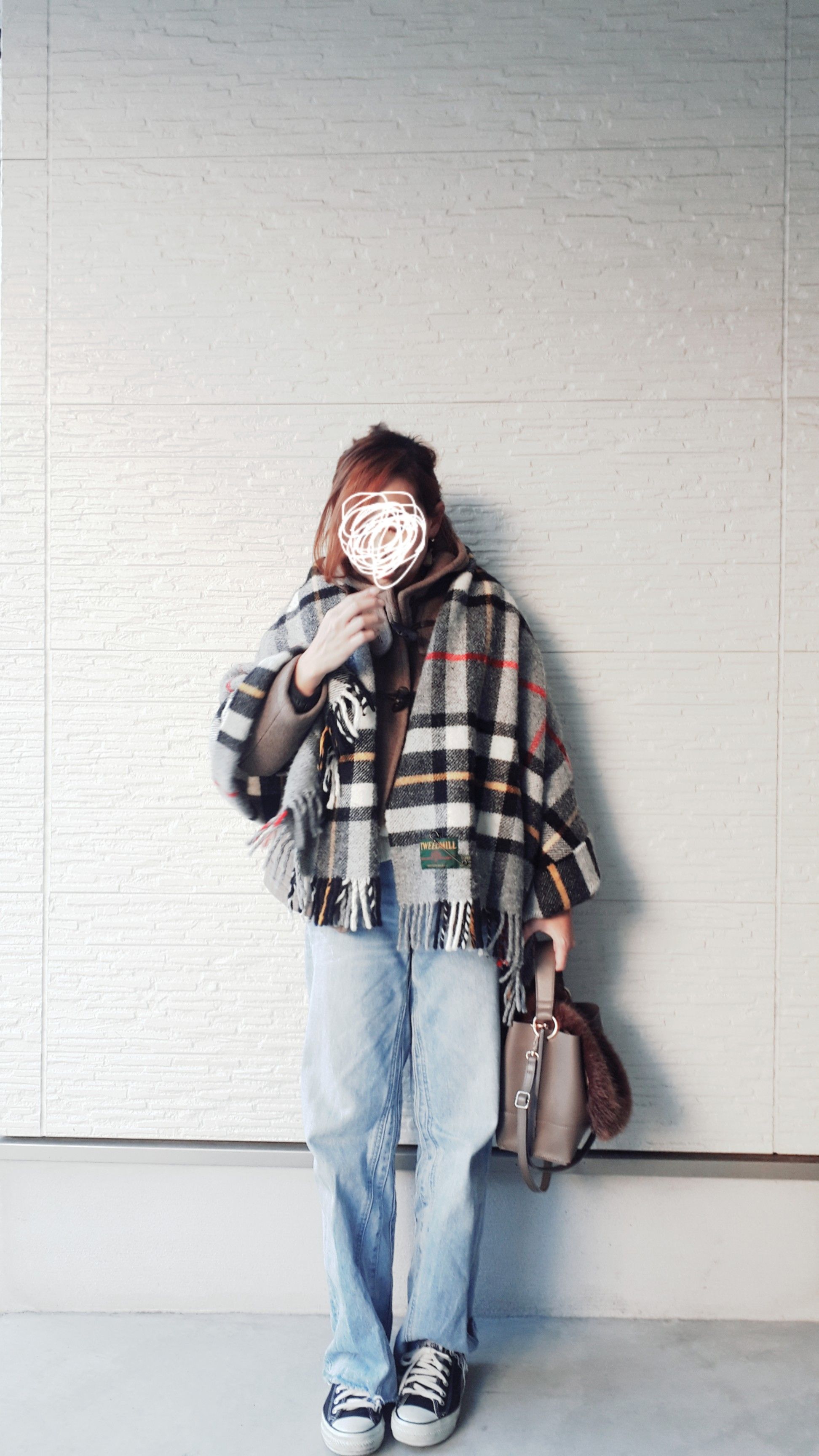 寒いので、この上からTWEED MILLのストールをまいて。。