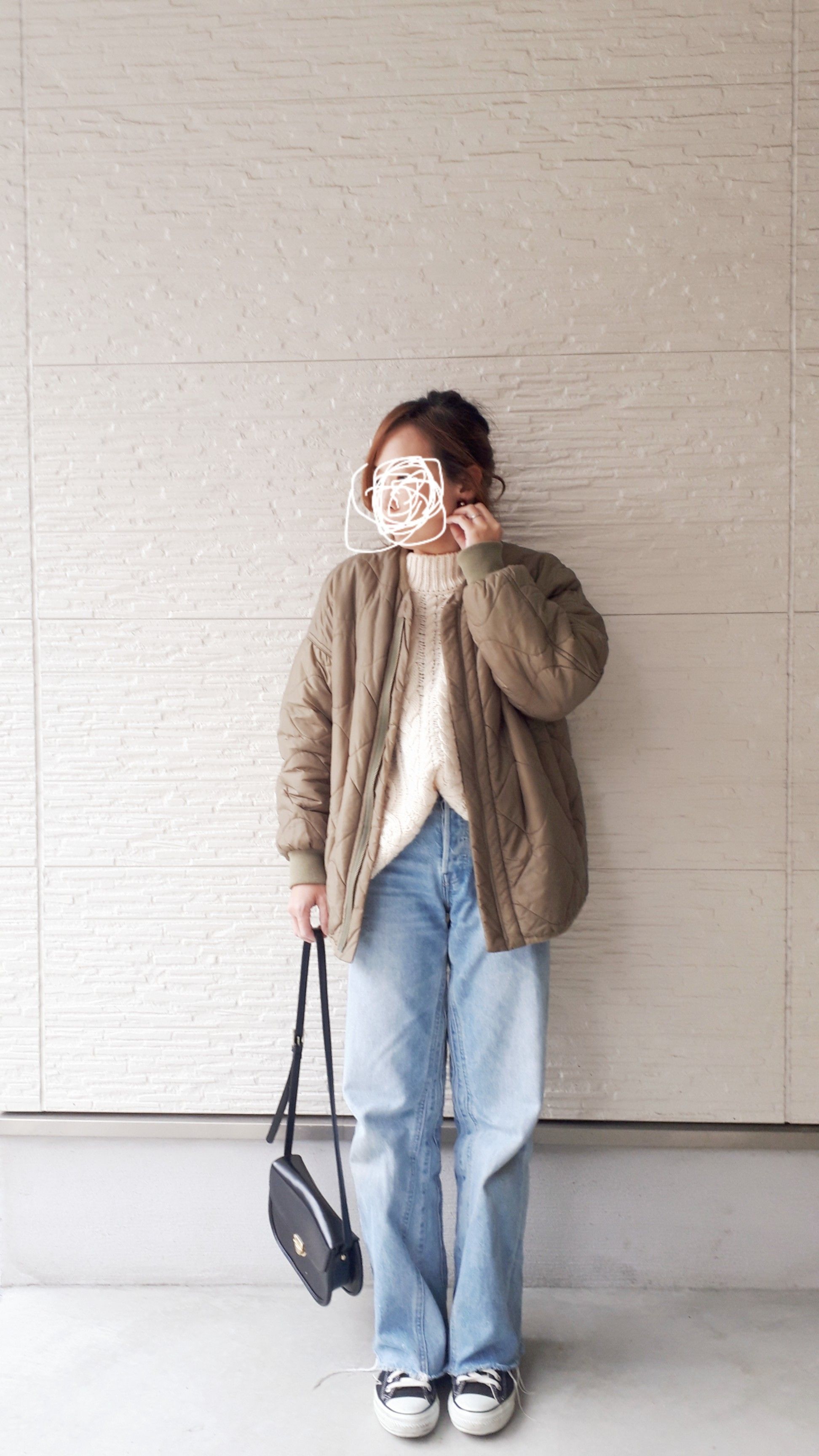 何にでも合わせやすく使いやすいので、キルティングアウターはお値段もお手頃だしオススメ!