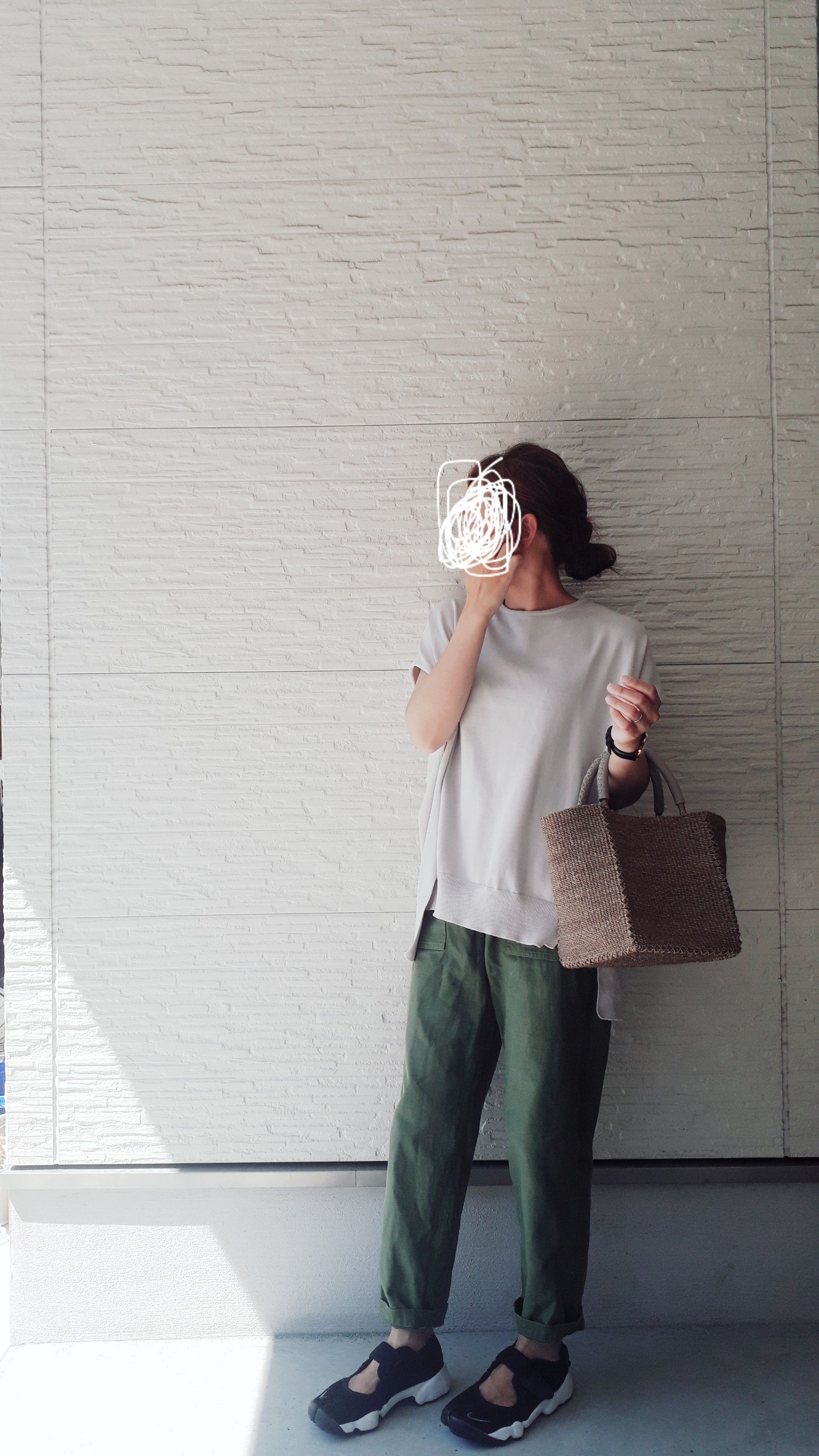 合わせているかごバッグはアローズ。