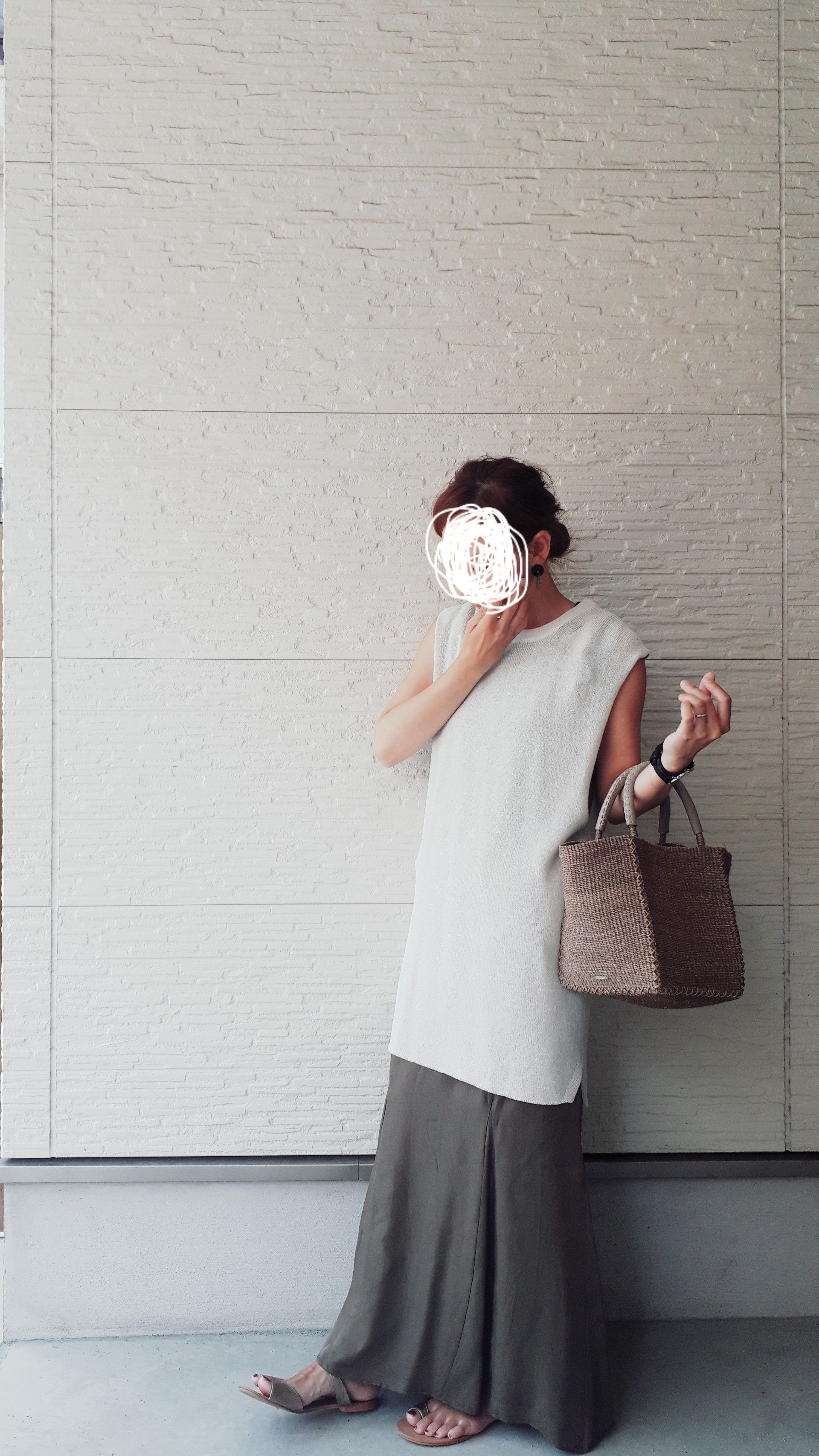 合わせているかごバッグはアローズ。