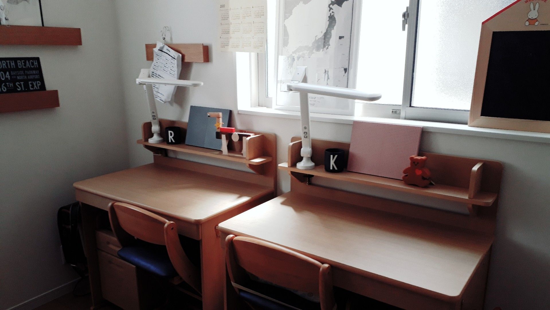 コンパクトサイズの机なら並べて部屋にも置きやすいです。