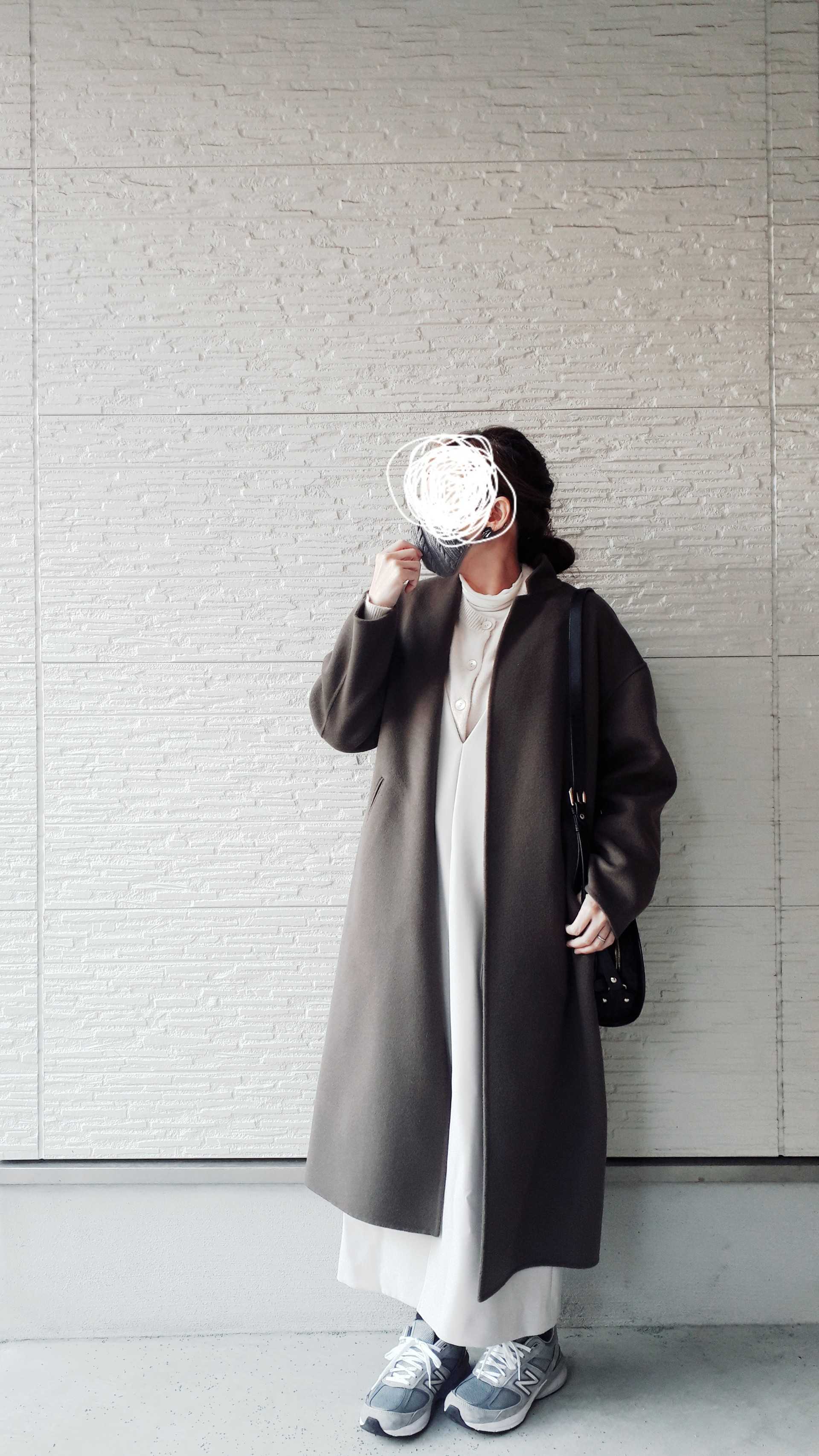 着た時のラインがきれいで、ブラウンにちかいカーキなので落ち着いた雰囲気に❤
