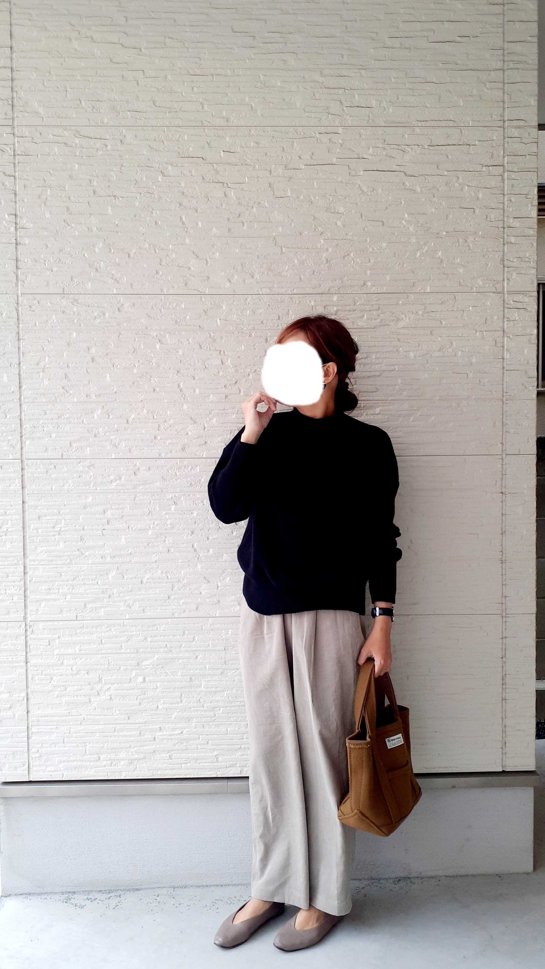 ボトムスをリブパンツにかえても、もちろんよくあう!