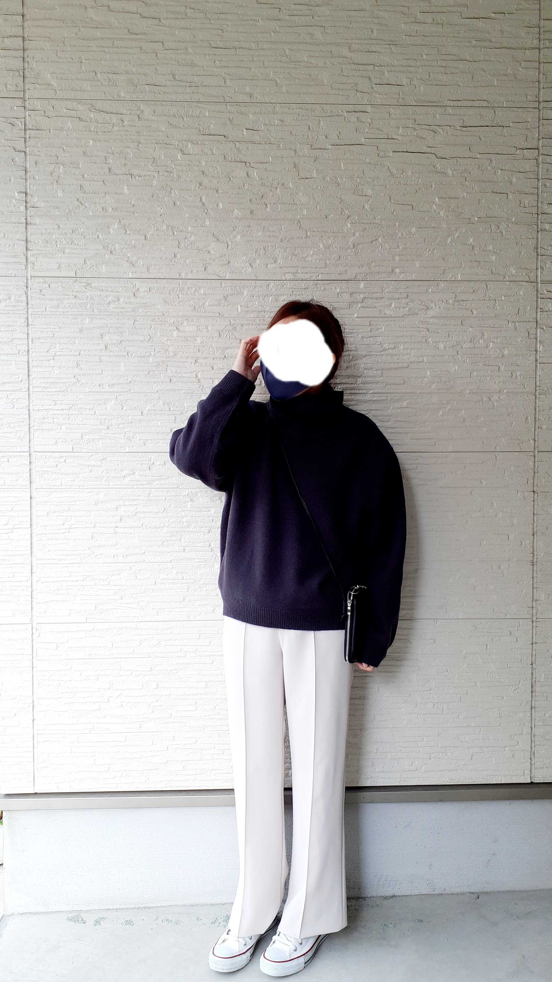 柄ニットも白パンツ合わせならきれいめカジュアルにも!