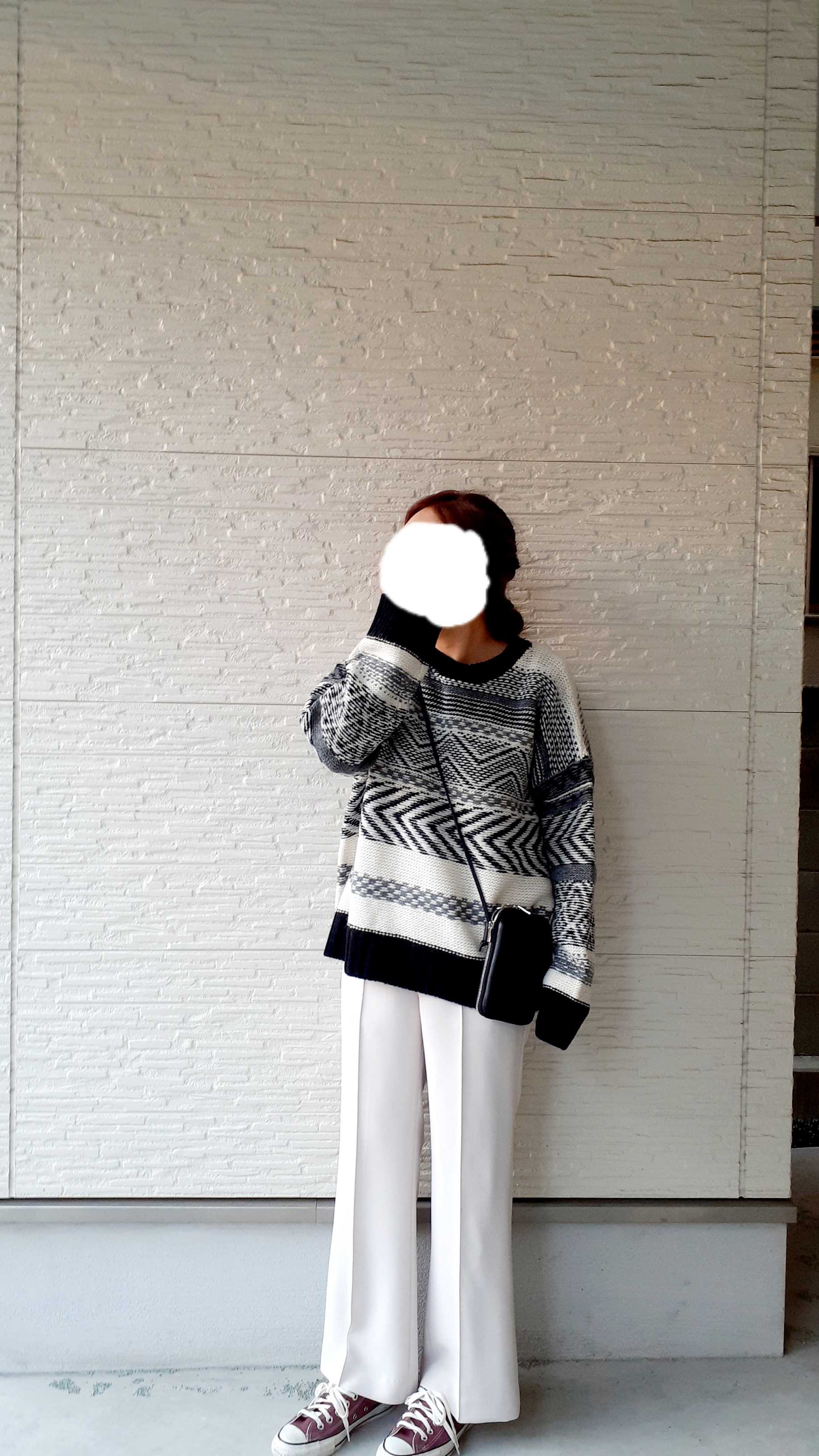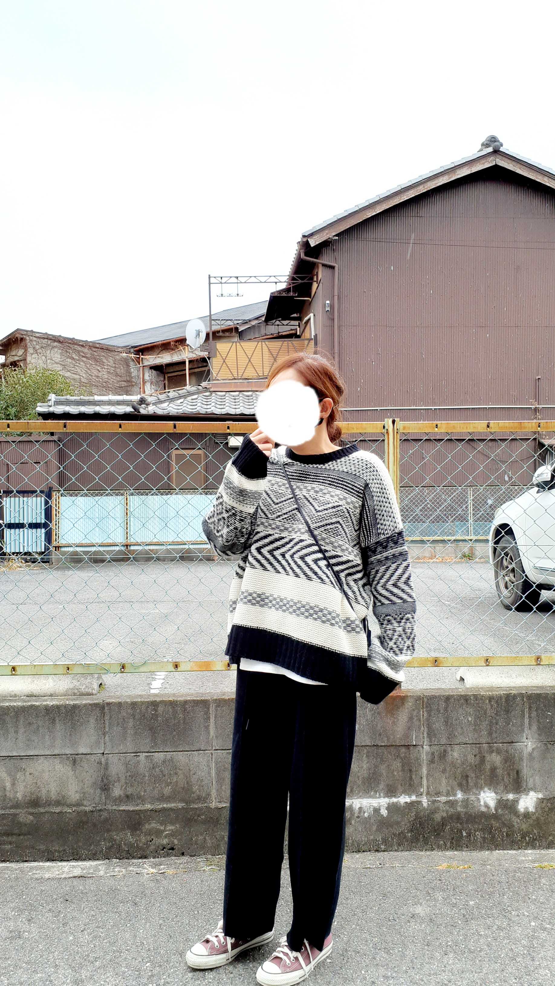 合わせている柄ニットはビューティー&ユース。