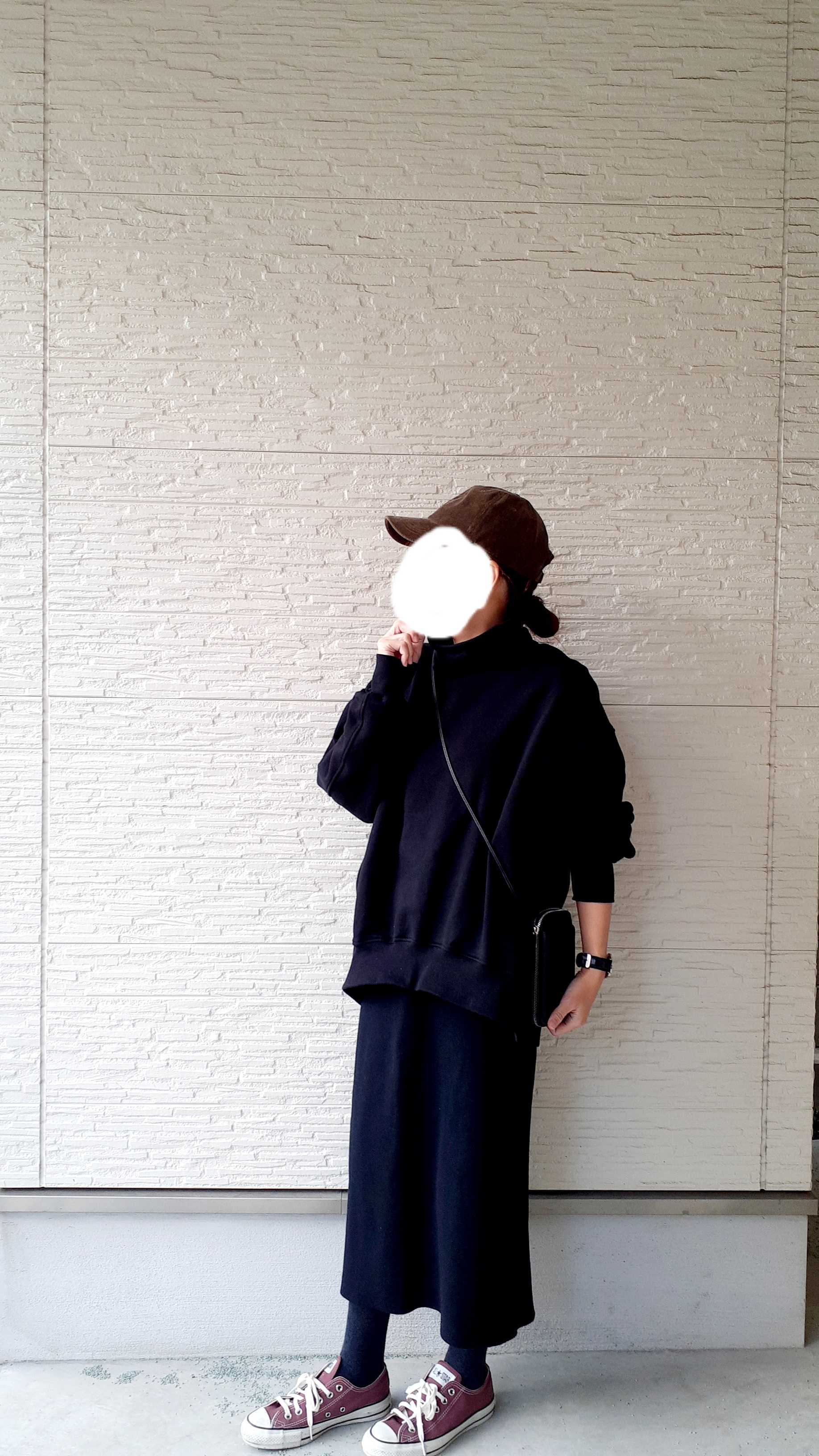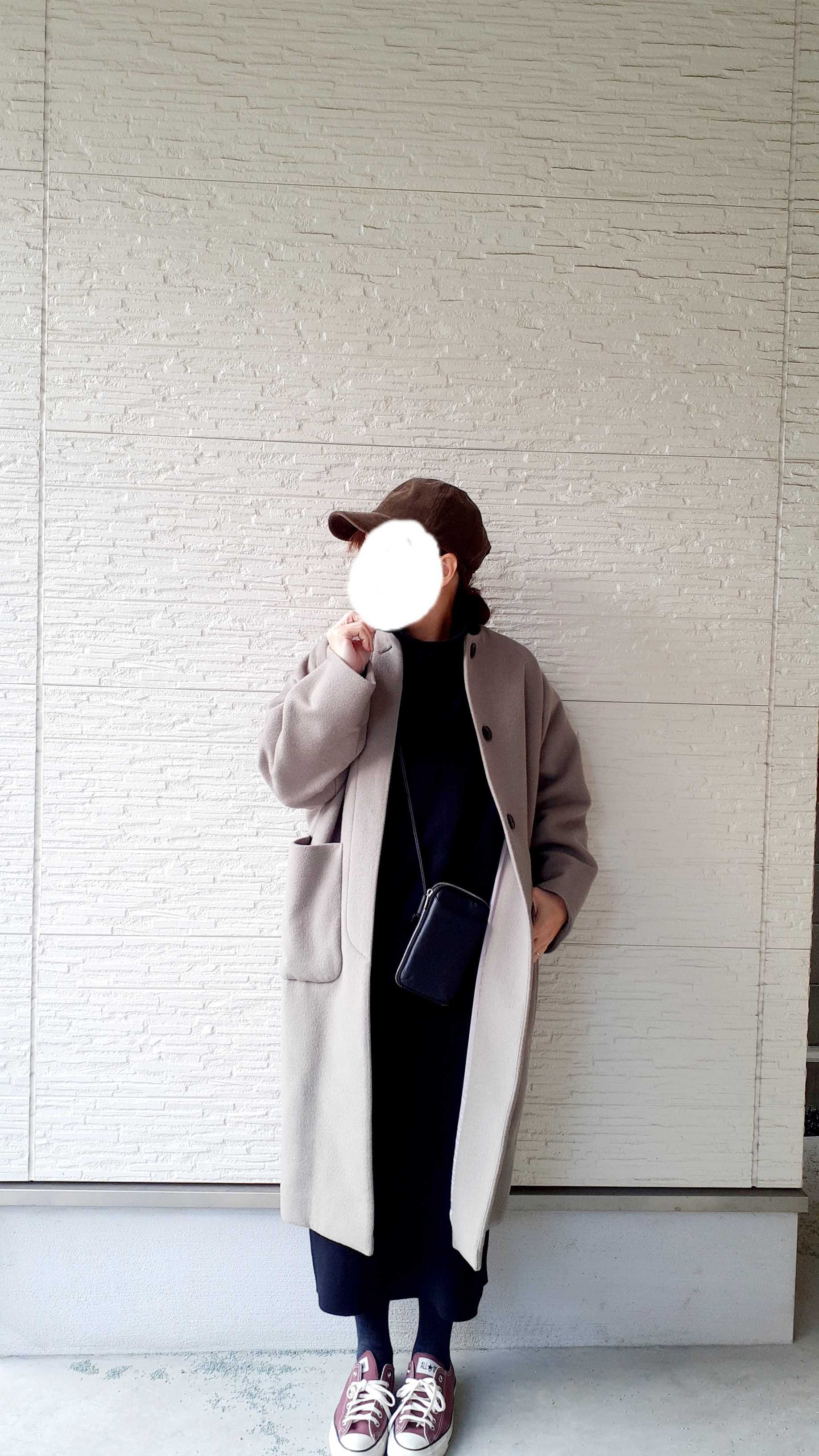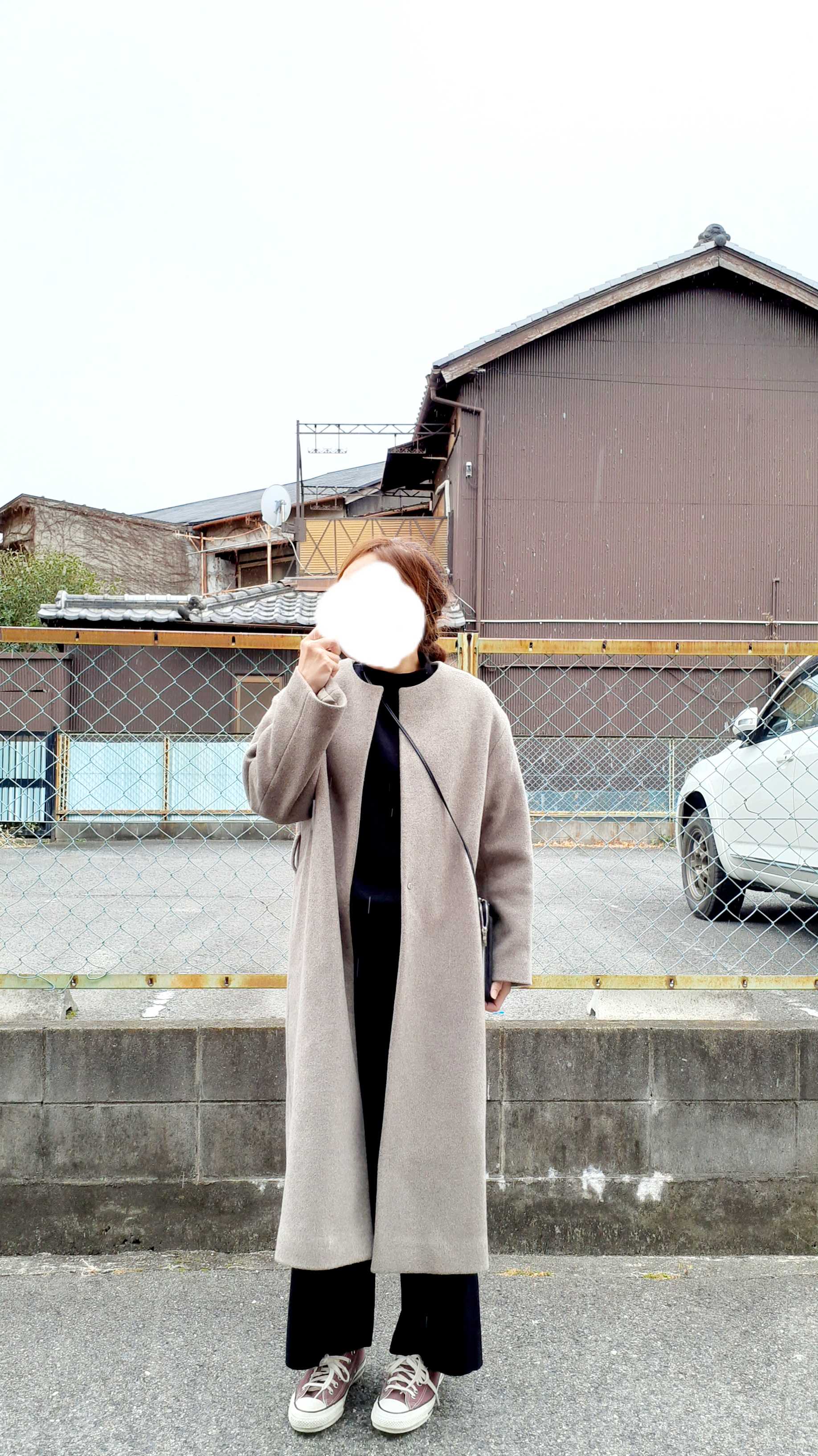 ブラックパンツにかえて、ブラックコーデにモカカラーコートにしても…