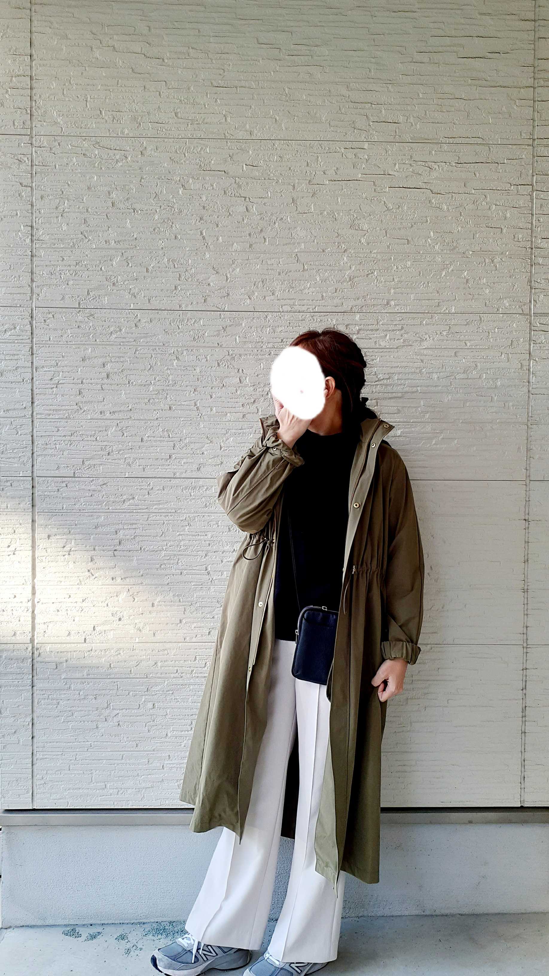 カジュアルなカーキのアウターにも白パンツ合わせなら上品に♡