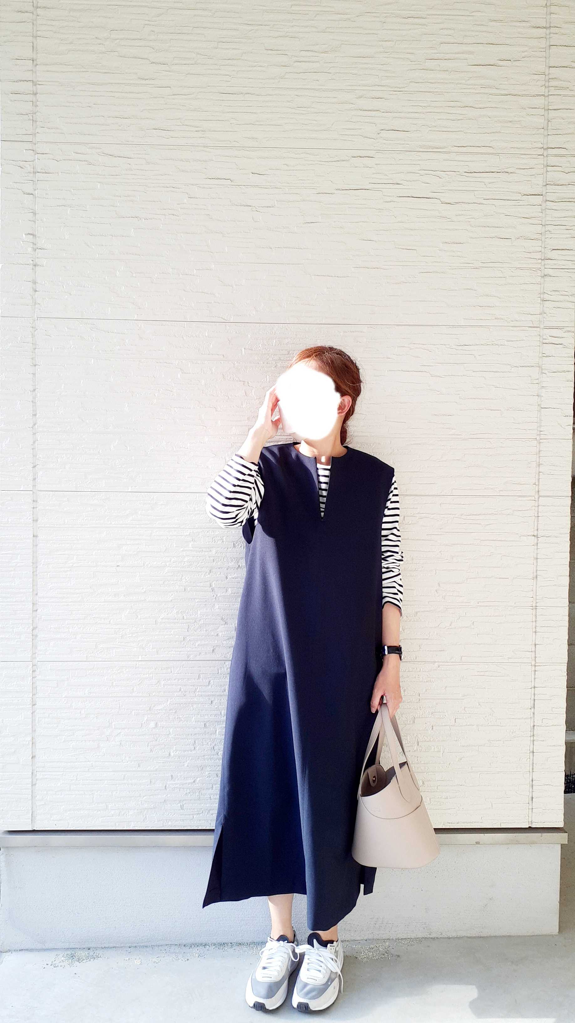 ネイビーのワンピースに合わせてみました。