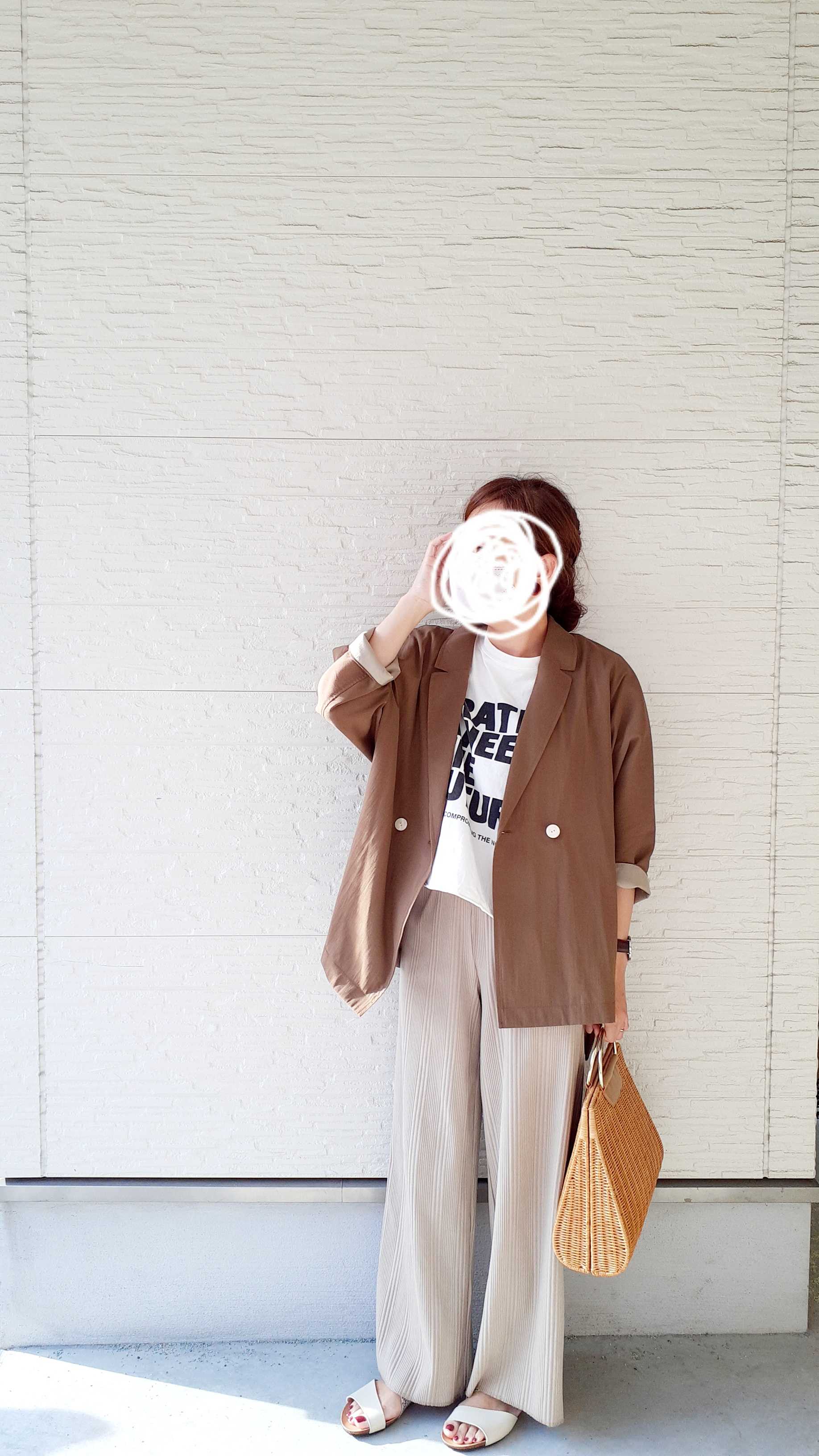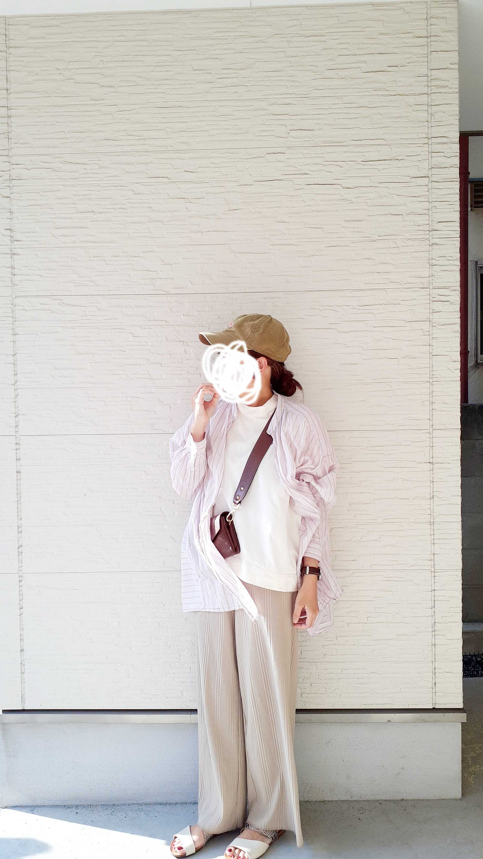 シャツは、niko and…で購入したラベンダーカラーを着てます。