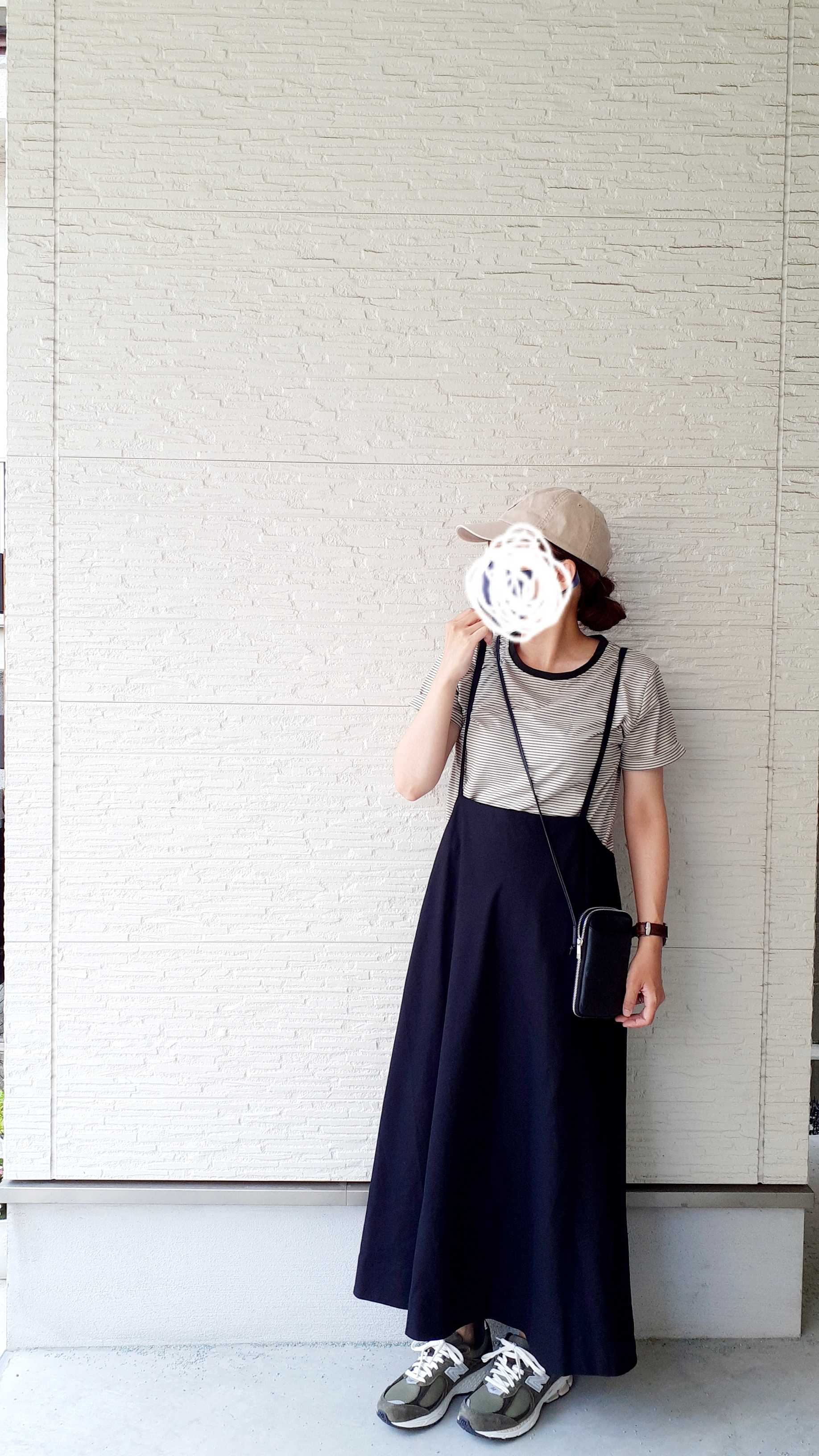 合わせているスカートは、ドアーズのサスペンダーフレアスカート。