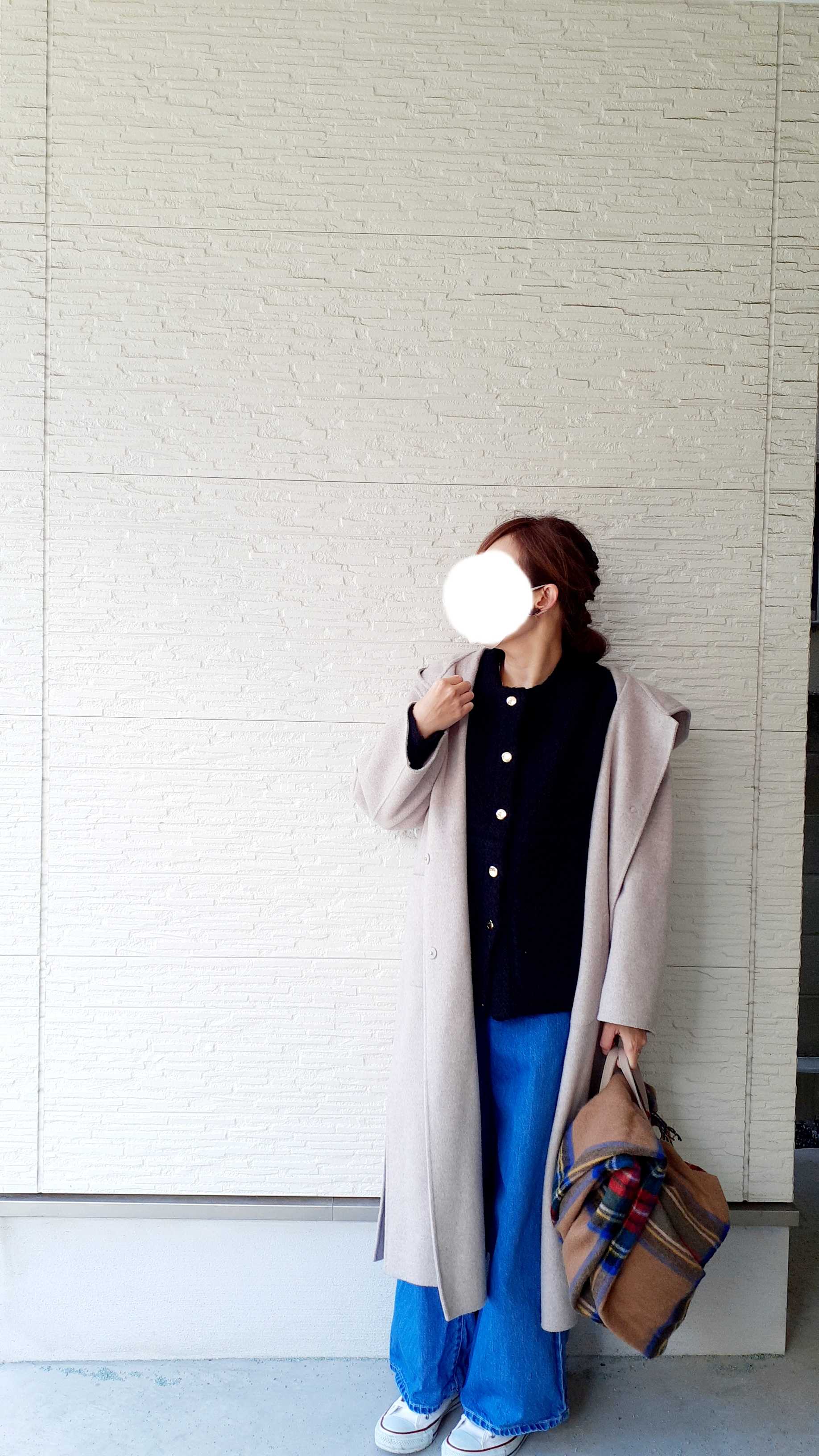 ベージュのコートは柔らかい雰囲気になるので、中のトップスがブラックでも、きつくなりすぎずに着れます。