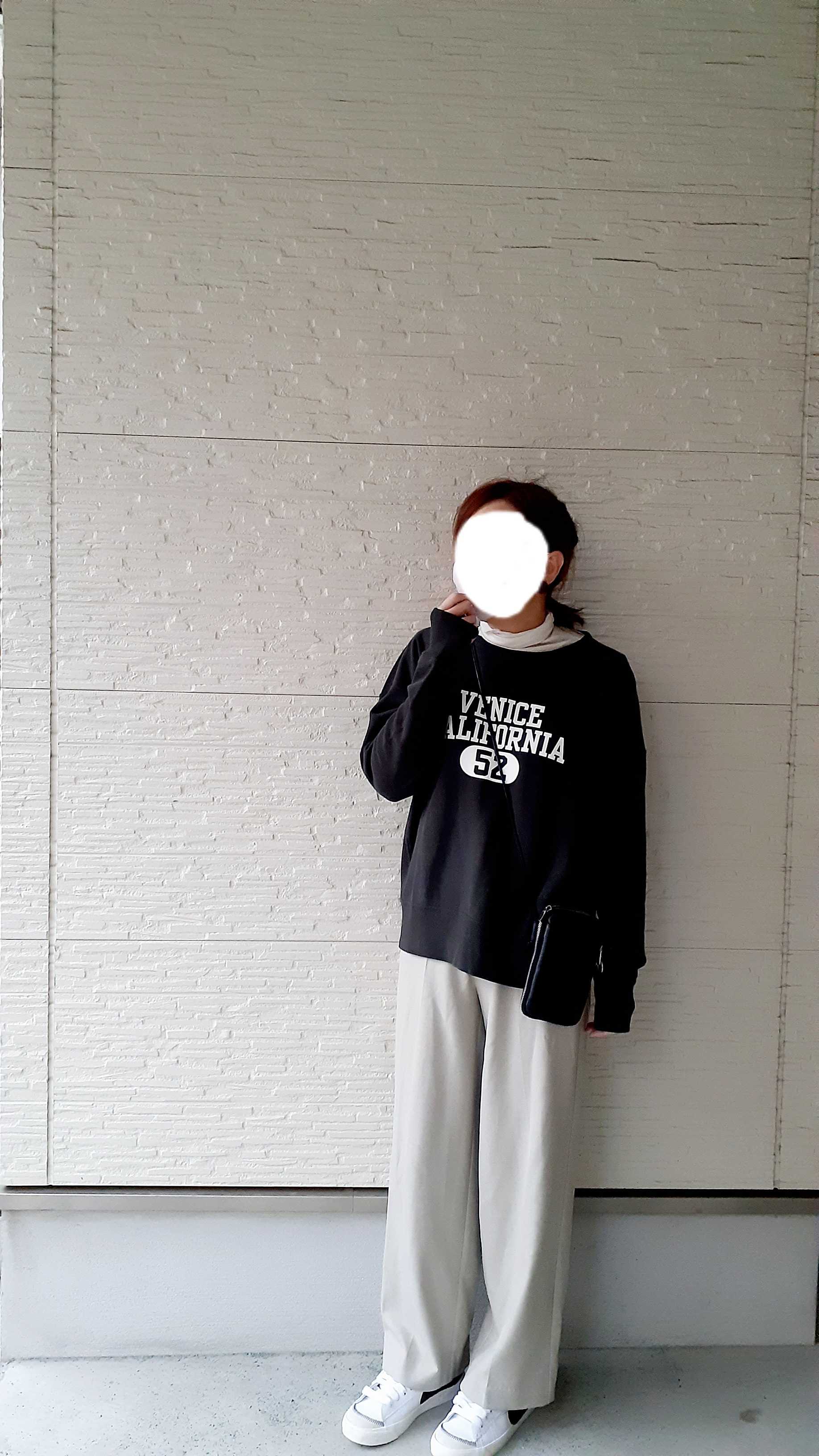 中のトップスはスローブイエナの裏毛コンパクトラグランスウェット。