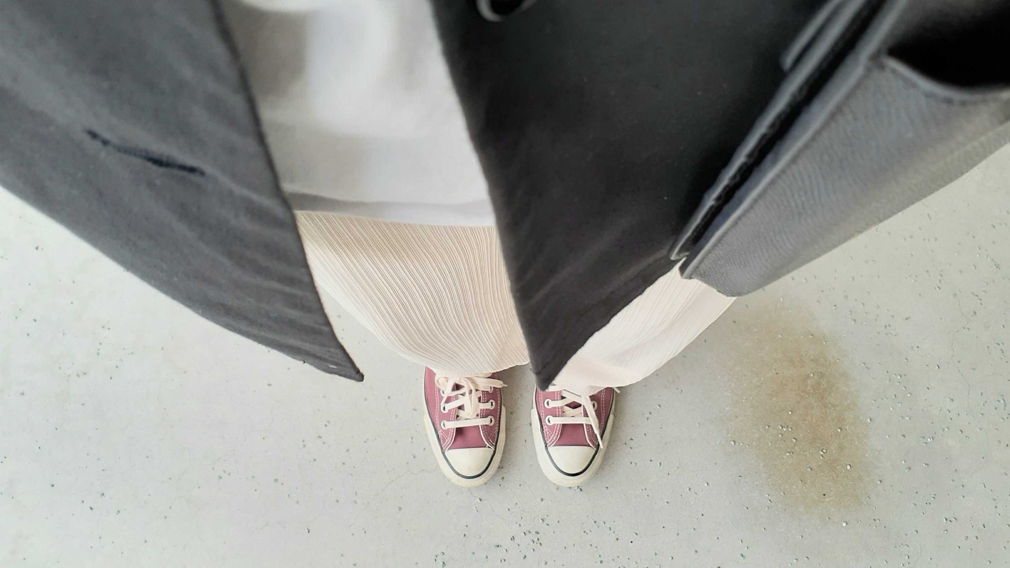 涼しげで、透けかんが可愛いシアートップスを中に合わせています。