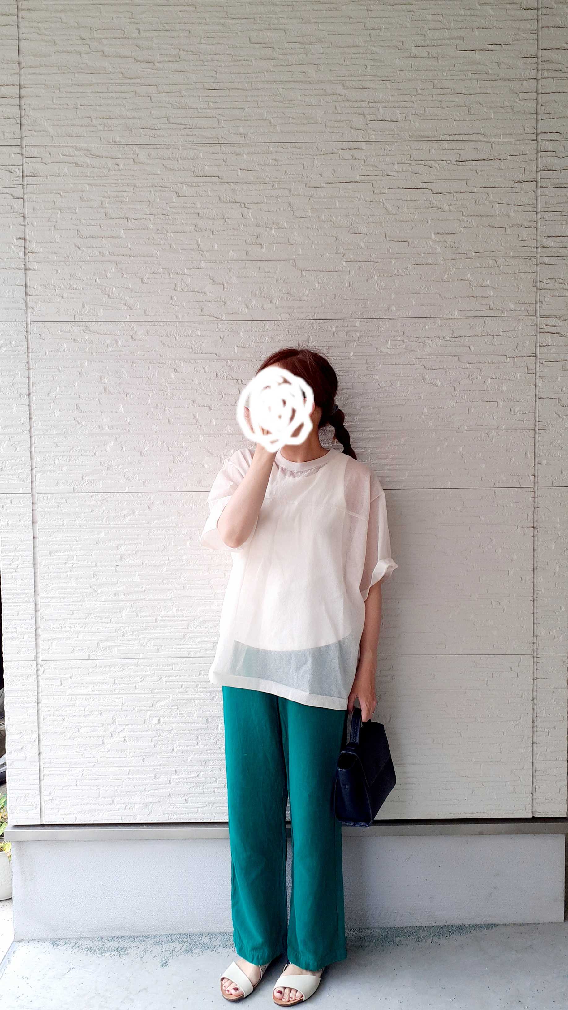 こちらのオフホワイトカラーを着ています。