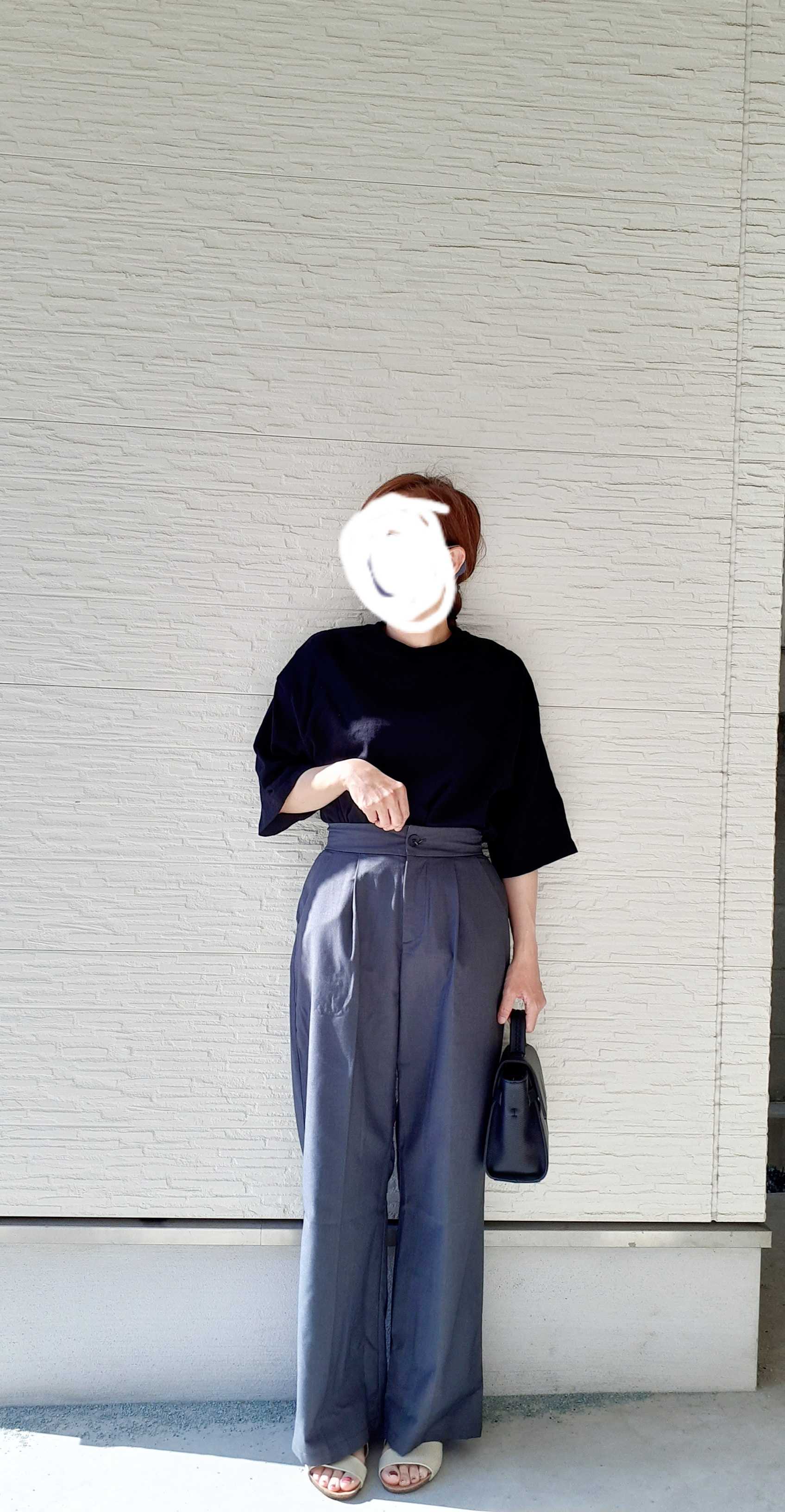 ハイウエストなのとタックが入っているのでTシャツをインしてもスッキリ!