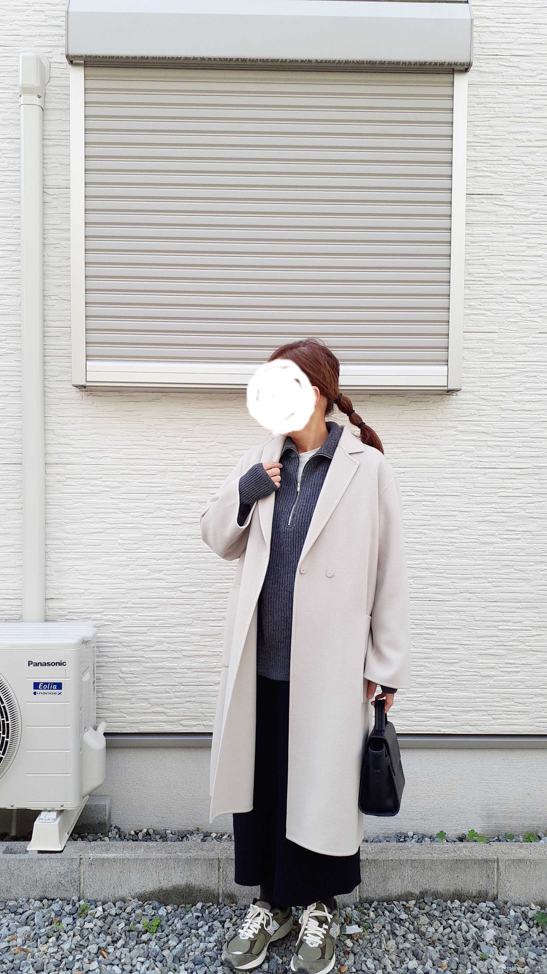 コートはHAMILTONダブルフェイスロングチェスターコート。