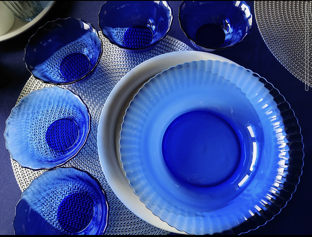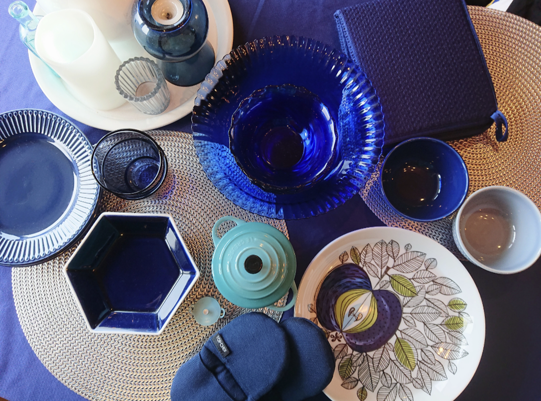 最後にダイニングテーブルにブルー集めてみたよ♫