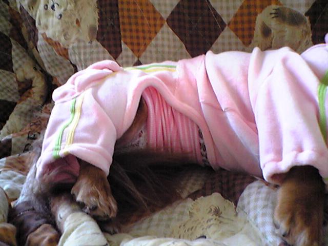 傷舐め防止と傷口保護の為に腹巻はナイスだけど上手に脱いでしまうチョコとの戦いは終結しました。この組み合わせが一番問題が少なかったですちょっと色気もない格好ですがお勧めです