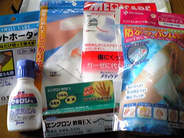 チョコの舐め舐めにより…化膿しているので張替え用の防水バンドエイドやら色々購入してきました。薬局の店員のテープかぶれにお勧めの塗り薬も一緒に・・・。※割と高い商品を勧められたけど店員の意見に従いましたよ!!およそ四千円ほどの出費でした。問題は剥がすのが困難であることチョコを撫でたり誉めたりして頑張りましたが少し剥がしたところで断念してしまい病院の先生に処置してもらうことにしました。