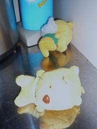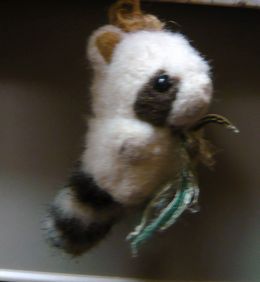 鼻も取れてぼろぼろのメイのお気に入りの小さなぬいぐるみ流しの扉の取っ手に、紐でぶら下げています。鈴が付いているので、チリンチリンと、メイが遊んでいると分ります。チョコはすぐ寝てしまうので、一人ぼっちになった時の遊び相手。一人でじゃれて遊びます「最近、3人(匹)で寝てるよ」という息子の言葉???こういうことでした。3人目は、あの小さなぬいぐるみ・・餌やおもちゃなどを決して寝床に置かないフェレット達。こっそり、寝床にプーさんなどのぬいぐるみを置いておくと、くわえて、宝物置き場に隠しに行きます。なぜだか最近、寝床に持って行くのです。メイはもちろん、チョコさえも、咥えて外に出すことはしません。以前、ちょっとこの小さなぬいぐるみに似た子がいました。名前は、クッキー昨年の今日、3月15日に撮った写真です。ブログを書いてなかった頃。フェレット達の写真もめったに撮ることはありませんでした。なぜだか、息子が「クッキーと写真撮る」と言って何枚か一緒に写真に収まったうちの1枚です。翌日、急に様子がおかしくなりました。お尻が汚れていて、立ち上がれないのです。それまでに2匹を見送っていますが、最後が近い時は病院に連れて行かないと決めていました。おばあちゃんになってから我が家に来たクッキー。友人の旦那さんに拾われた迷いフェレットでした。拾われた近くのスーパーに張り紙をしても、飼い主は現れず、友人宅にはワンちゃんがいるので、チョコを飼っている我が家にやって来ました。ず~と下痢が続いて、がりがりだったので心配したけれど、元気になって、リビングを、バウッバウッ!!って感じで元気に走り回っていました。体が硬くって、しなやかに走れなかったクッキー。嬉しい時は、ぴょこんぴょこんと飛び跳ねていました。我が家に来た時、チョコが警戒して、シャ~アって鳴いても、チョコに対しても、人間に対しても、1度もシャ~アって鳴くことはありませんでした。ただ、人懐こくって、遊んで遊んでとじゃれて来ては、ガブリ!!ガブリ、ガブリ・・・これには閉口。寒い日は、私が寝ているベッドにやってきて一緒に寝ます。ベッドから降ろしても降ろしてもやって来ました。でも、そのうち歳をとったせいか、ベッドにも、ソファーにも上がれなくなってしまいました。友人の旦那さんに拾われるまで、どうやって生き伸びていたのか・・・拾われた日には、インスタントラーメンを硬いまま食べたとか・・・雑食で何でも食べました。台所に来て、なにか床に落ちてないかクンクン。ご飯が好きで、パクパク。いつも見ると、餌を食べているか寝ているか・・・なんだか、今のチョコに近いかも。歯の様子からして、4歳はとうに過ぎているようでした。とっても人懐こくて、穏やかな、おばあちゃんフェレットのクッキー。息子の面倒も、どちらかと言うと見てくれているような。息子も、クッキー、クッキーとかわいがりました。チョコがまだ小さかった頃のことです。フェレットは、具合が悪くなったら、体が小さい分進行が早いです。ブドウ糖液をスポイドで飲ませ、マーシャルの餌を離乳食のようにして、フェレットバイト(栄養剤)を混ぜ無理やり口に流し込みました。半日以上、ウンチもオシッコも出ない状態だったのが、やっと、下痢だけど出て、少しよろよろと歩けたので、なんとか持ち直しように思えました。朝になりました。クッキーは目覚めることはありませんでした。冷たくなっていましたが、その寝顔は安らかでした。クッキーありがとう。チョコ、息子の面倒をみてくれて。拾われた、たった2年しか我が家にいなかったクッキーですが、その存在感は大きいです。明日は、クッキーの一周忌。メイの大好きな、小さなぬぐるみに似ている子でした それでは今日はこの辺で see you again♪~ヾ(゚-^*)⌒☆ チョコまりん