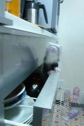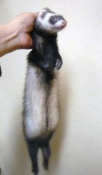 キッチンで飼っている、我が家のフェレット達しゃがんで1匹の相手をしていると、もう1匹が肩から頭へと登ってきて流し台へ飛び移ろうとするから、要注意でも実際に、今まで飛び移ったこともないし、大丈夫だろうと安心していたら、メイが本当に飛び移ってしまったのです一瞬のことで??だったのですが、飛び移った流し台から、マンガのようにメイが飛び上がったのですなんと、シンクの中に洗いかけのお鍋があって水が入っていたのですメイには悪いけど大笑いシャッターチャンスではあったのですが、一瞬のことだったのと、さすがに、その姿を撮ろうとカメラをとりに行くほど薄情な飼い主ではありませんよ~きっと、すご~くビックリしたんでしょうね。キッチンの隅で小さくなって、濡れたお腹の辺りの毛づくろいをしていました。その姿のかわいいことメイに関する面白いことと言えば、首根っこをつかまれるのがどうも嫌いなようなのです。チョコをはじめ、歴代飼ったフェレットは、比較的そうやられるのが、嫌いではないようでリラックスするのですが・・・・例えばチョコは、全身の力が抜けてこんな風です。気持がいいのか、そのあと必ず、おおきなアクビをします。ところが、メイときたら、一応女の子なんだから、この格好はないでしょう・・・・で最近はこんな感じでお祈り状態に、後ろ脚をしっかり握り合っていますつまり、何かに掴まっていないと不安なんでしょうね。だから、掴まれるものなら何でもいいみたいです。先日は、息子のドラムにスティックに・・・お猿さんのようなフェレットのメイです。寒い日は仲良く一緒におねんねです人間みたいでしょう?!明日は寒くなるみたいですねえ。咲きかけの桜が持つのはいいのだけれど・・・オークションの新作は、4月までは出品予定なしです。ちょっと、休憩してまた取り掛かりたいと思います。チョコ 3歳11カ月メイ 1歳1カ月 それでは今日はこの辺で see you again♪~ヾ(゚-^*)⌒☆ チョコまりん