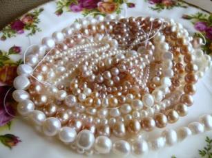 これが、先日届いた淡水パール。自然のこの色合いにうっとり。。。単品の時はそこまで思わなかったのですが、こうやって大盛り(?)にすると、久しぶりに、わくわくドキュ~ンパールを使った作品が大好きなんですが先日もお伝えしたように、ビーズの穴が小さいんです。楽天で調べてみると、良さそうなツールがありました。欧米ビーダーに広く使われているビーズツールビードイット・ビーズリーマー【ビーズワーク専用...メール便210円で送ってくれるのも嬉しい。他の作業にも使えそうなのが、「ピンバイス」と言うもの。写真のno.95です。細かいサイズの穴あけバリ取りに最適ANEX 精密ピンバイス NO.95【あす楽対...このショップもメール便対応のようです。ピンバイスなら、近所のホームセンターにあるのではないかと、今日お出かけして来ました。在庫限りの残り1本! そういうのに、弱くってつい購入。「ANEX ピンバイス両頭式」 980円で買って参りました。先日100円ショップで買った、ドリル部分もぴったり戻って、パソコンで調べたら、楽天の方が送料入れても安くてがっかり。でもホームセンターは、ドリル部分持って行ったらサイズが合うか確かめてくれたから安心して買えたし、まあいいっか・・2mmサイズパールは、おめかしシリーズに使う、#26のアーティスティックワイヤーに通るかどうかが、問題なんだけど、あいにく、サイズ切れ。#28に通ったので、まあ良しとしよう。ブレスレットにする、写真の3サイズくらいのビーズの穴を広げられたらいいんだけど・・・早速、一番大きいバロック型のパールをぐりぐり・・・パールの粉が一杯・・・すでに、穴は小さくても開いているわけなので、結構、あっという間に貫通して大きく広げることができ、画像のように、0.8mmのポリウレタンゴムがスムーズにとおりました。次の、8mmサイズくらいいのバロック、6mm大の、ポテト型・・・と調子に乗って開け続けてちゃちゃっと、出来上がり~比較に置いているローズクォーツのビーズは、左から6mm・8mm・10mm玉です。ただし、ブレスレットすべてをパールにして、20玉以上全部の穴広げは大変だなあ。まあ、4粒までですね。いままで、太めのゴムが通らないものは、どうやっていたかと言うと、0.3mmとかの、細めの平ゴムを、2本取り(かなり細いものは4本取り)などにして、チョコまりんの場合は、テグスを松葉状に折って、ゴムの輪になったところにひっかけて写真のように、針と糸のように通していました。小さな穴の場合は、ほんとに力いっぱい引っ張り出さなければならず、ゴムが傷んだり、挙句の果てに切れたりと、・・・悪戦苦闘。1本ではなく、2本のテグスス(松葉状の足部分)をビーズ穴に通すのは、結構イライラしてきます。やっと、すべてを通し終えて、結ぼうとすると、石のエッジの処理が悪いものは、そこで切れてしまったり・・・涙涙涙・・なんか上手くいかない時って、3回も4回もやり直しで、以前お話ししたように、ゴムの切れっぱしが沢山できてしまうこともあります。結構、簡単そうで、苦労しているゴム仕様のブレスレットです。さてさて、このミニドリル、柔らかなパールの場合はいいのですが、石にも使えるかどうか。柔らかめの石だったら大丈夫かもしれませんが、当分は、パール専用ですね。今晩、オークション3つ終了するので、残りは二点だけに・・また寂しくなりますね。先日ご紹介のオレンジムーンストーン、頑張って明日また出品します。さてさて今日も、元気に遊ぶ2匹ですめずらしく、チョコもカメラ目線それでは今日はこの辺で see you again♪~ヾ(゚-^*)⌒☆ チョコまりん