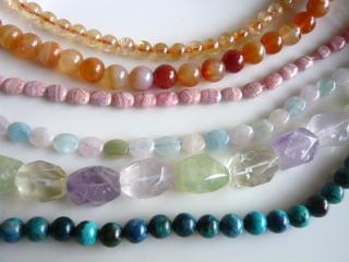 「誕生石」はご存知の方も多いと思いますが、月ごとだけでなく、誕生日ごとにもあるようです。そもそも、誕生石は、宝石店組合のようなところが決めたことなので、あ~そうなんだ 程度に記憶にとどめていただければいいんじゃないかと思いますよ。ちなみに今日、4月16日は「ヒデナイト」そんなの知らないし~ ・・・で調べてみました。「ヒデナイト」(Hiddenite)」ヒデナイトの宝石言葉:すがすがしい明るさ、自然の恵みモース硬度:7和名:リチア(リシア)輝石リチウムを含む花崗岩およびペグマタイト中の造岩鉱物。科学的に比較的新しい鉱物で二つの宝石名を持っています。ピンク色のリチア輝石はクンツァイト、緑色はヒデナイトと呼ばれています。ヒデナイトのほうは小型で産出も少ないようです。だから、クンツァイトは、知ってるけど、緑のヒデナイトはビーズでは見かけない。とってもきれいな石です。【厳選Tucson】ヒデナイト SA 結晶石ヒデナイトの意味と効果ヒデナイトには、頭脳を明晰にして、理解力を増す力がある。心の乱れを沈めて落ち着き、集中力を高める働きがあるため、仕事や勉強、受験などに最適なお守りとなる。特に仕事に対して効果があり、良い結果を残せるサポートをしてくれる。出典: 「パワーストーンの意味事典」さん新作です。手持ちのコンクシェル で作ったブレスレット。コンクシェルはメキシコ湾岸から、西インド諸島を含むカリブ海全域に生息しており、現在ワシントン条約により保護されている為採取期間も限られているので大変貴重な天然素材のひとつです。〈シェルのパワー〉海の静けさを運んできてくれる貝。安眠に効果があり、枕元に置いて眠ると悪夢を見ず、リラックスして眠ることができるとのこと。また、ピンク色のコンクシェルは恋のお守りになるとのこと。フラッシュ加工のローズクォーツと合わせています。パワーは、さておき、かわいいでしょこのところ、フラッシュ加工のローズクォーツをよく使いますが、8mm・6mm玉は、わりと色が薄くので他と合わしやすくて好きなんです。場合によっては、普通の、ピンク発色の良いローズクォーツを使いますが・・・先日から、石との波長のお話をしていましたが、このコンクシェルと、珊瑚、マザーオブパール、もちろんパールも、同じ海のもので、相性がいいようです。でも、同じピンクのパールでも、微妙な色合いで、コンクシェルと合うもの、合わないものがありました。結局今回はパールはなしにしましたが。石の組み合わせを決める時、色彩学的なこともあるのでしょうけど、私と波長があったものが選ばれているのかなと最近思います。石との波動を合わせるために、プログラミングするのですが、その具体的な方法は、その石を大切にして、最低1週間位一緒に過ごす(できれば入浴以外は身につけて)という簡単な方法です。石を手に握って、願い事をするとか、願いを書いた紙の上にしばらく置いておくという方法なども言われています。でも、それは波動が伝わると言うより、自分自身が何を願っているのかを、文字にしたり言葉にして整理し再認識するという手段として効果があるのかなと思います。波動の同調が何より大切。ラジオの周波数があった時に、音が聞こえてくるように、石と周波数があった時に、石が自分に向って微笑んだりドキドキしたりするのだ思っているところです。だから、パワストーンを手に入れただけで願いは叶いません。思いや願いを込めた自分の波動を石に覚えてもらうプログラミング作業が必要だからみたいですよそれでは今日はこの辺でsee you again♪~ヾ(゚-^*)⌒☆チョコまりん