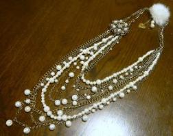 11月27日の誕生日石は 真珠母貝(マザーオブパール) 特定の種類の貝を指しているわけではなく、内側に虹色に輝く真珠光沢を持つ貝殻全般の総称です。主なパールの母貝には、白蝶貝、黒蝶貝、茶蝶貝、あわび、あこや貝、淡水真珠貝、コンク貝などがあり、それぞれに個性的でうつくしいパールを生み出す。真珠(パール)の主な成分は炭酸カルシウムで、薬としても使われてきた。宝石言葉:快心和名:真珠《 真珠母貝(マザーオブパール)のパワー》真珠を育てるように、持ち主の精神的、肉体的な成長を促す効果があり、どんな人の心も、パールを育むようにやさしく癒してくれるストレスで眠りが浅くなっている人は、眠る時に枕元に置いておくと愛に包まれたかのように安眠できる。いつまでも若々しく美しさを保つ効果もある。子供のお守りにもなり、母ような愛で危険から守ってくれる。出典: 「パワーストーンの意味事典」さん白蝶貝製の猫ちゃんこれもマザーオブパール(MOP)です サンリオとコラボキティちゃんのチャーム付き子供用かと思ったら、大人もOKみたい。お値段は大人向けかな^^;土曜は、娘の友人の結婚式らしくってつけていく予定の、イミテーションパールのじゃらじゃらアクセサリーもっとジャラジャラにして欲しいとのリクエストええ~これ以上取り外しできるブローチも両サイドについていたらしいのですが、片方は、ブローチとして使っていたら落としてしまったようです。取りあえず、1個のみつけてみると結構華やかに先日大きな玉の淡水パールを購入したので、チェーンだけの部分に付けてみました。何処に追加したか分ります?娘がいらないというので取っておいたストラップ。ファーのボンボンと、これにもイミテーションパールが付いていたので、ネックレスの留め金の部分につけてみると結構かわいい問題1 さて、パールはいくつ追加したでしょう? (ヒント:ファーのボンボンの下に1個隠れています。)問題2 パールを追加して総重量は何グラムになったでしょう? (ヒント:チェーンが結構重いので、つけてると肩が凝りそう 〇〇〇グラム)じゃらじゃらネックレスは、画像が不鮮明なのでまじめに数えるとちょっと難しいですね。あてずっぽうで ^^;答えは一番下に書いておきます。問題2の正解者には、何かプレゼントしようかな~重さはプラスマイナス10グラムまでがニアピン賞としま~すネックレスの重さに一番近い方に手作りストラップをプレゼントすることにしました。あんまりネックレスの雰囲気は変らなかったけど、これに気をよくして、何か他にもないかと娘に聞くと、ある懐かしいネックレスを出して来ました。このネックレスのリフォームの様子はまた明日こちらは、イミテーションパールではなくゴールドそれでは今日はこの辺でsee you again♪~ヾ(゚-^*)⌒チョコまりん 問題1の答え追加パールの数 計16個 淡水パール13個と イミテーション3個(1個はボンボンの下)