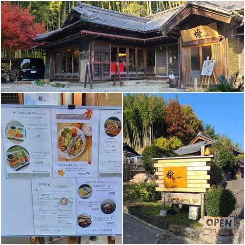 お店の裏は竹藪、庭にはモミジ。駐車場も広いです。