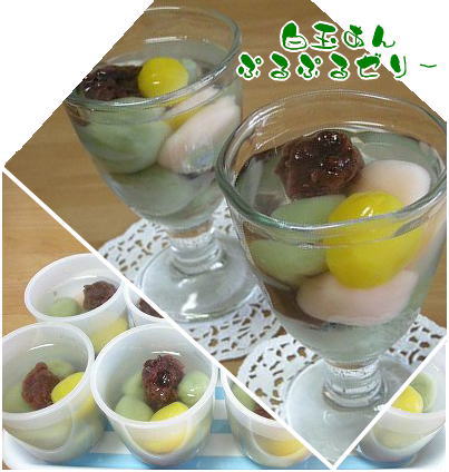 暑いから冷菓です。桃の白玉粉が半分残っていたので新品の抹茶白玉粉と合わせて白玉ゼリーを作りました。リュスティックに入れるつもりで買って置いた小瓶の栗。これも彩りに入れちゃいましょう。餡も丸めてトッポン!アガーのゼリーの中にポイポイ入れて冷蔵庫で冷します。白玉にはお砂糖入ってないので餡と一緒に丁度いいです。ゼリーがぷるっと、白玉団子はもっちりして美味しいです。これを作る前に、団子と餡にアイスを乗せて子供にあげたら美味しいって喜んだけど、なんでゼリーで固めたの?って。アイスのあんみつみたいのが美味しいけどゼリーが邪魔って。チェ~ッ… ( ̄、 ̄)。ゼリーにしたら食べてくれないです。これも会社のおやつに持っていったら(/≧◇≦\)アチャー!!白玉団子が固ぁ~い!昨日はトロンとしてたのに何でかな?白玉粉での大福は何日も柔らかいし、冷凍しても解凍すると作りたての柔らかいお餅になって美味しいのにε-(ーдー)ハァまた、失敗しちゃったよ。無理矢理食べさせちゃってごめんよ。あと、よもぎの白玉粉があるから得意のクリーム大福作るわ。それで名誉挽回のおやつで持っていこう。いつのことやら(笑)
