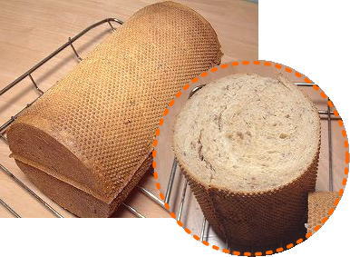 今週は長男が夜勤で、お弁当作ってあれこれやで夕方から9時まで台所にいるんです。その間に、成型の簡単なパンなら邪魔にならずに作れるのでメッシュ週間にしました。配合や水分率を計算するのは苦手で、計算して焼いても思い通りに出来無いし、そんなら数焼いて慣れようと、2色とか素材とかバリエーション変えて焼いてます。少しは成型も変えて巻いたり、ねじったり、丸めたり、ラジバンダリσ∬^~^∬豆乳で生地が固くなったので、卵30gのレシピを計量考えず楽チンに全卵にしてリベンジで同じ渦巻きです。今度は抹茶大納言。やっぱ空洞が出来ちゃったの。1色なら空洞も少なくなるかも?と抹茶だけにして、大納言を巻いてみました。あんぱんのあんこは大きな空洞が出きるよね。これは水分が多いからでしょう。大納言は湿ってるから小さな空洞が出きると思って強力粉を少しだけまぶして巻いてみました。沢山だと粉が残るから慎重に少し湿り気を取る程度です。ちょっと片寄ったのはご愛嬌。でも空洞が無いよ。v(=∩_∩=) やったね♪抹茶がちょっと濃いけど、渋くていいやぁんと自己満足しておいて。次行こう!キャラメルパウダーがあるので、渦巻き・・・と思ったけど面倒になって全部。チョコチップを沢山入れてみましょう。ホワイトチョコでも空洞になったから捏ねの時に入れようかと思ったけど、二次発酵で溶け出したらって不安だ。薔薇たたみの丸で包む成型を3つ。あ!でもそうすると3つの繋がる所にはチョコチップが無いわけよね。切った時チョコが見えない所も出きるよね。結局2つに分割して生地を伸ばしてチョコチップを散らして巻き込んで、その2本を交差しての成形をしました。でもアタシσ(o^_^o)には向かないわ。ねじって山が出来るんだけど、山の所は型の穴に張り付いて出てきそう。谷の所は型にギリギリ届くんでメッシュ柄が付かないの。下手やねぇ。やっぱりワンローフ型の方がアタシσ(o^_^o)向きみたいです。まだ2色でねじりたかったけど、わざわざ失敗する必要もないので違う成形にしよう。あと3種類のメッシュパンを考えてます。もう少しお付き合い宜しくね。