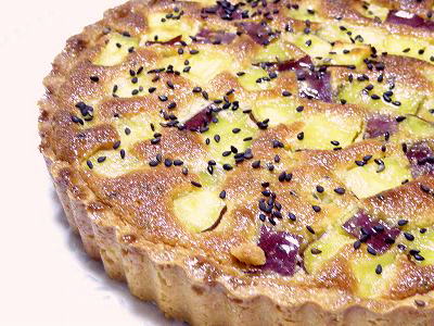 アーモンドプードルを朝からアミカに買いに走りさっそくタルトの用意。まずはタルト生地を作り1時間以上寝かせなきゃいけないので中断しその間、実家へひとっ走り(車で10分)お使いに行って参りました。"\( ̄^ ̄)゛ハイ!!出来上り~。お芋がゴロゴロと大きすぎちゃいましたね。壊れかけた小さいカメラで撮ったので灰色っぽく写っちゃった(x_x;)シュン画像補整して何とかここまで色づいて見られる色になりました。これはすぐにカットすると壊れちゃうので少し我慢。@clover+ cafeさんのさつまいものタルト出来れば一晩って書いてあったけど・・・・待てません。3時間が限度(笑)大きい壊れてないカメラで撮り直ししました。まだ早かったぁ!ボロボロ。まぁ、崩れかけた程度で砕けてはいないし美味しいからヨシとしましょう。アーモンドクリームにもトッピングにも胡麻乗せて美味しいタルトです。上にバターと蜂蜜を混ぜたのを塗ってるんだけど、少し少なかったみたい。clover+ cafeさんのように綺麗な艶が出ませんでした。まだタルト生地が2/3残ってるの。冷凍しなかったから、早めに使いきらなきゃ。明日焼こう。美味しくってちょっと食べ過ぎたから胸焼けしちゃった。年かしらん?そろそろバターを控えないといけないお年頃。食欲の秋を封印したい(爆)昨日はジイちゃんが1人で渋柿をとってました。バアちゃんが午後から枝を落としてました。この青いコンテナ4個あります。1個は実家へと嫁のアタシσ(o^_^o)は運び役。200個くらいあります。頑張って剥いてね。娘のアタシσ(o^_^o)は実家へ持って行って辛子明太子のお土産もらった(笑)海老で鯛を釣って嫁の立場は('▽^*)オッケー!さぁて明太子料理しよう。